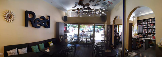 Ναι, η αύρα του είναι άλλο πράγμα. Έχει μία ησυχία ζηλευτή, που σε εμπνέει να βυθιστείς, να ταξιδέψεις, ακόμη και να φιλοσοφήσεις ρε αδελφέ. Και μία ζεστασιά τη νιώθεις. Έχει διακοσμηθεί με μεράκι και μοντέρνα αισθητική. Αυτό το ράφι δε που σχηματίζει τη λέξη Read είναι όλα τα λεφτά. Ο χώρος χωρίζεται στα δυο, με δυο χαρακτηριστικές καμάρες. Από τη μία λειτουργεί το (πλήρως ενημερωμένο, να τα λέμε αυτά) βιβλιοπωλείο, που θα βρεις παλιά αλλά και νέα βιβλία. Ε και από την άλλη (ακριβώς δίπλα δηλαδή) είναι το καφέ. Το ωραίο είναι ότι οι χώροι είναι διακριτοί, αλλά όχι χωρισμένοι. Λειτουργούν ανεξάρτητα και μαζί. Επίσης, μπορείς να πάρεις το βιβλίο σου ή το laptop σου (ναι έχει ανοιχτό wifi) και να απολαύσεις μόνος ή με την παρέα σου ένα γλυκό, χωρίς να αγοράσεις κάτι.