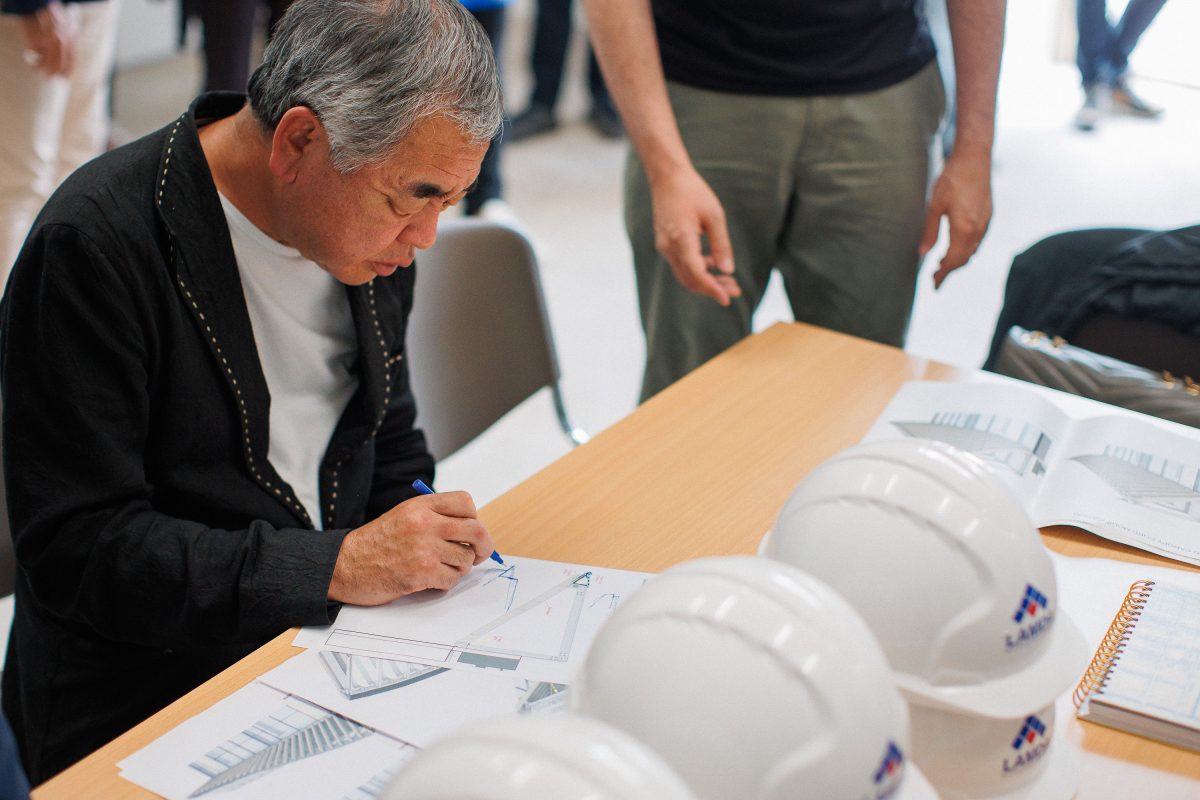 Ο Kengo Kuma βρέθηκε μάλιστα αυτές τις μέρες στον χώρο της επένδυσης. Κατά τη διάρκεια της επίσκεψής του παρακολούθησε και επέβλεψε την εξέλιξη του σχεδιασμού, την πορεία των μελετών και την επιλογή των υλικών.