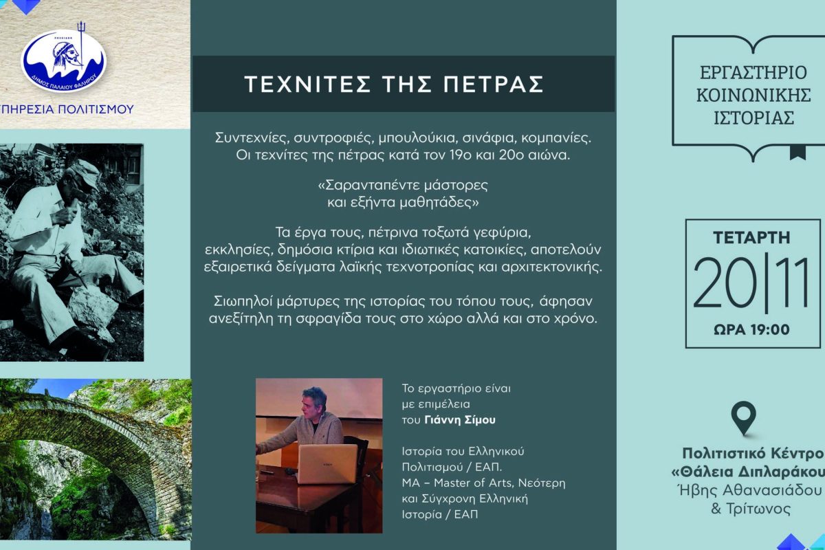 Μετά την επιτυχημένη πρώτη παρουσίαση που αφορούσε τις ψυχοκόρες, το Εργαστήριο Κοινωνικής Ιστορίας Παλαιού Φαλήρου εξερευνά τη ζωή των τεχνιτών πέτρας που με τα έργα τους σμίλεψαν την ιστορία.