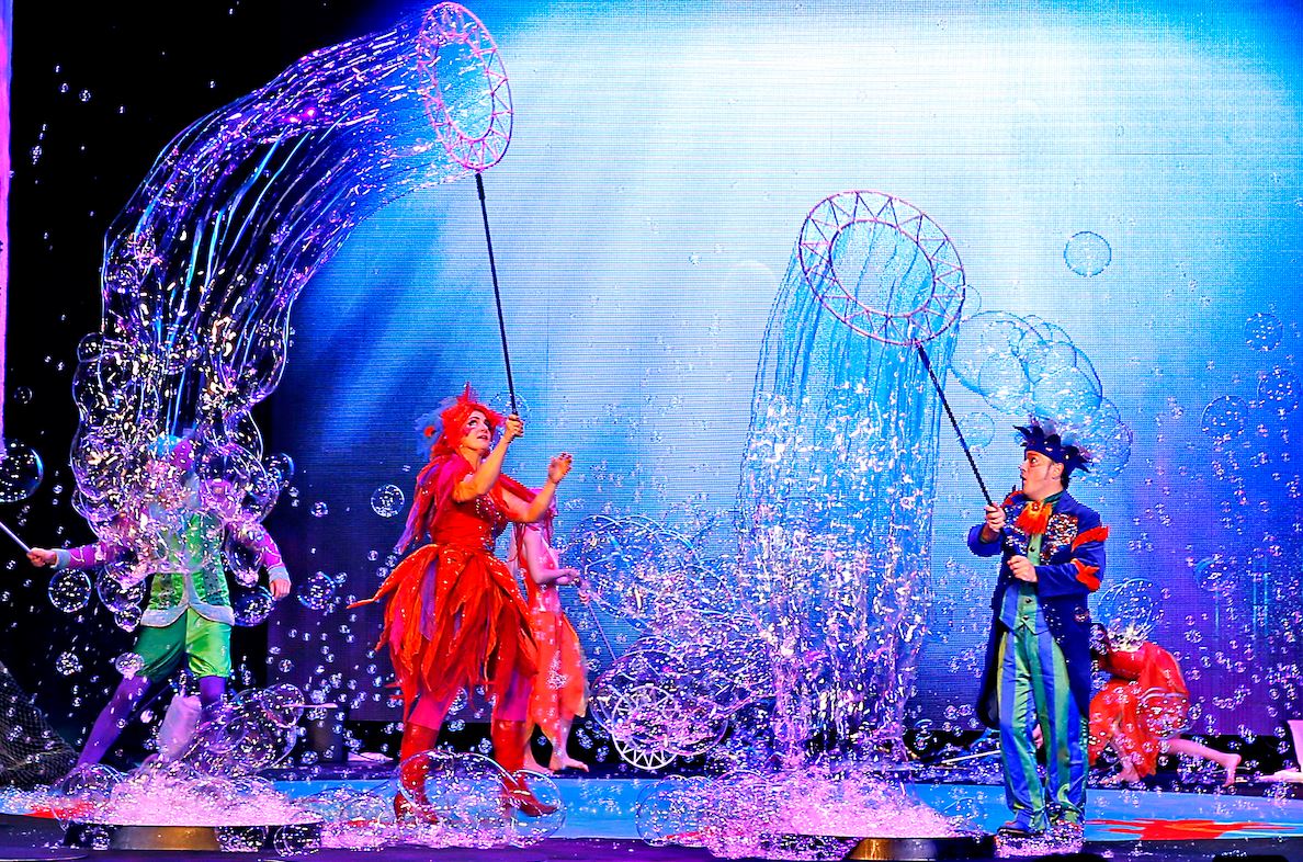 Το μοναδικό μείγμα θεάτρου, παντομίμας, χορού, ακροβατικών και μαγείας, μαζί με την ακαταμάχητη ομορφιά των φυσαλίδων, κάνουν “Το υποβρύχιο Bubble Show” μια μοναδική εμπειρία για κάθε θεατή.