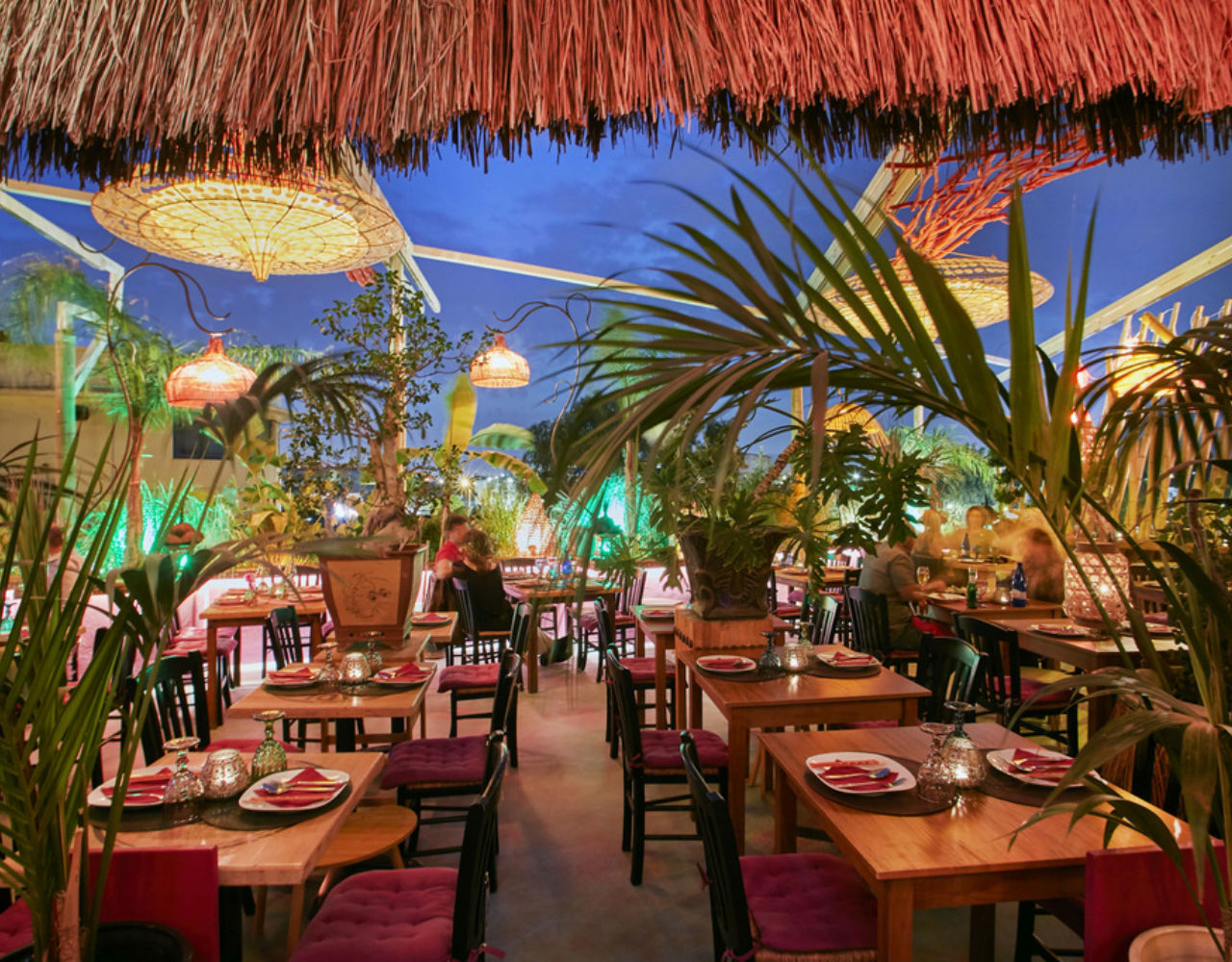 Το εξωτικό σκηνικό, ο σωστός χαμηλός φωτισμός, τα έντονα χρώματα και φυτά, οι χειροποίητοι πολυέλαιοι από φίλντισι κάνουν το Andaman Sky ιδανικό προορισμό για τα βράδια του Σεπτεμβρίου.