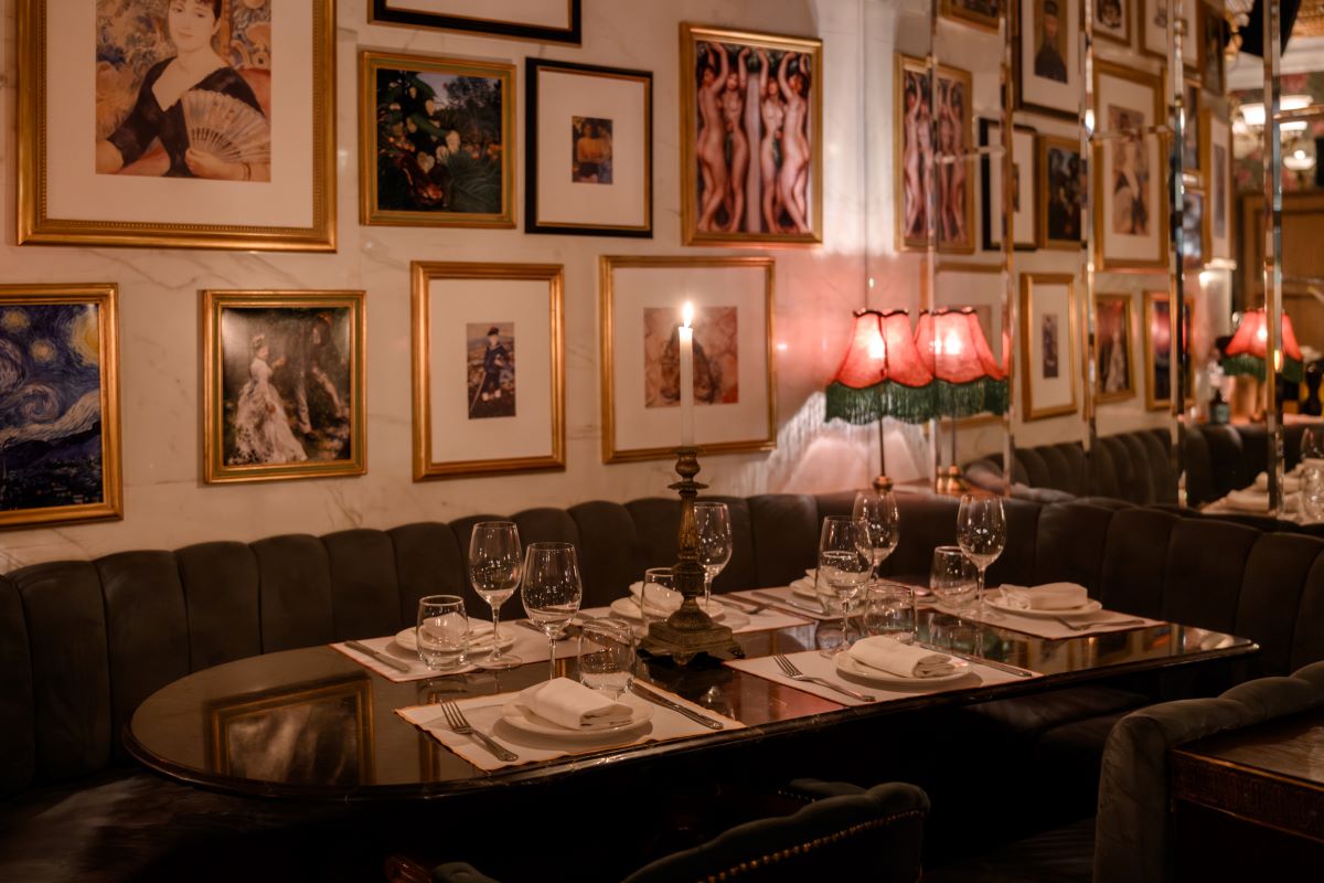 Οι ρετρό πολυέλαιοι, η κομψή φλοράλ ταπετσαρία, οι βελούδινοι καναπέδες και το one of a kind χρυσό καφασωτό ταβάνι, τελειοποιούν τον αυθεντικό παριζιάνικο αέρα του χώρου και προσθέτουν μια αίσθηση κινηματογραφικής αίγλης. Ό,τι ακριβώς χρειάζεσαι για τις γιορτινές μέρες -αλλά μεταξύ μας, και όλο τον χρόνο!