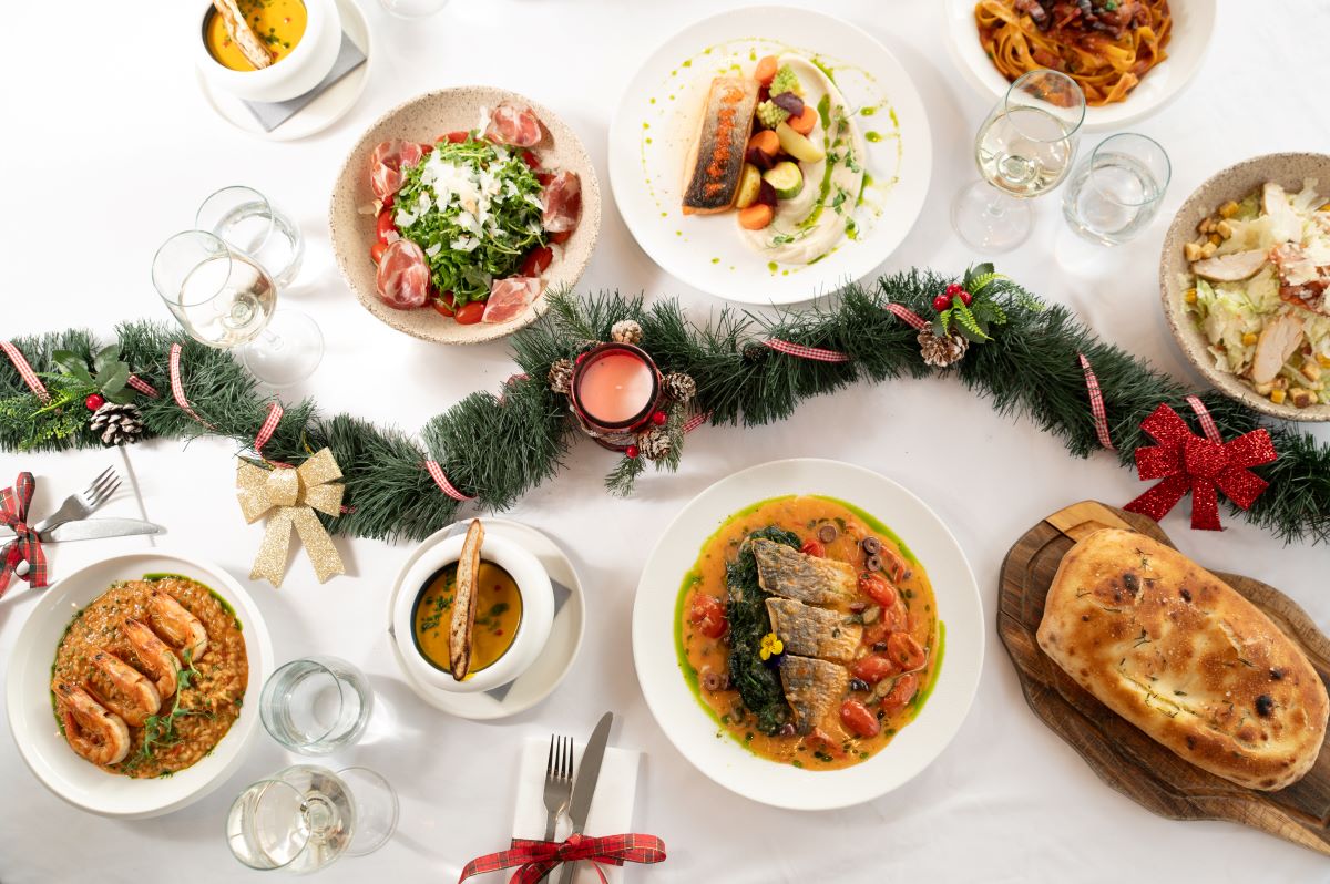 Ακολουθεί ένα αραντσίνι με μοσχάρι ραγού, μοτσαρέλα fior de latte σε κρέμα ρικότα και crumble προσούτο αλλά και άκρως χειμερινή και γιορτινή σαλάτα με buratta, baby ρόκα, ψητή γλυκοπατάτα, πατζάρι, πέστο βασιλικού και καρύδια. Κυρίως πιάτο, το κλασικό χριστουγεννιάτικο χοιρινό κότσι, μελωμένο με πορτοκάλι, δαμάσκηνα και πουρέ πατάτας. Το δέιπνο ολοκληρώνεται με ένα ελαφρύ και φρουτώδες tiramisu με mascarpone, μανταρίνι και καραμελωμένα καρύδια.