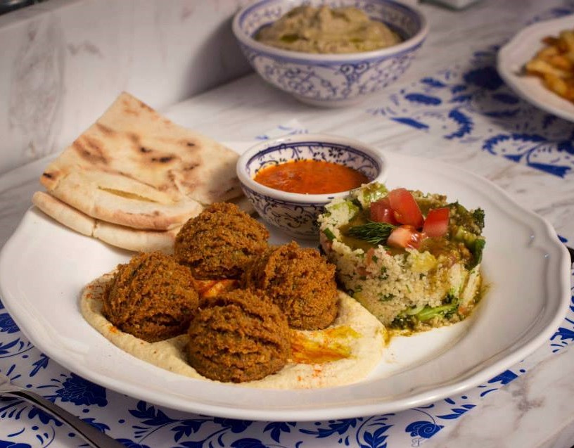 Ο πρωταγωνιστής του μενού είναι βέβαια το φαλάφελ. Και -πίστεψέ με- καθόλου άδικα. Μπορείς να διαλέξεις ανάμεσα στο τυλιχτό φαλάφελ μπάμπα γκανούς (με μπάμπα γκανούς, ταχίνι, τομάτα, κρεμμυδάκι, μυρωδικά, χαρίσα), το φαλάφελ γιαούρτι (με σως γιαουρτιού, πράσινη σαλάτα, κρεμμυδάκι φρέσκο, κόλιανδρο, μαιντανό, χαρίσα) ή το φαλάφελ χούμους (με χούμους, πολίτικη σαλάτα, ταχίνι, κρεμμυδάκι φρέσκο, κόλιανδρο, μαιντανό, χαρίσα). Αν πάλι δεν θέλεις τυλιχτό, μπορείς να ζητήσεις τη μερίδα φαλάφελ, που σερβίρεται στο πιάτο με χούμους, σαλάτα κους κους, χαρίσα και φρεσκοψημένα πιτάκια.