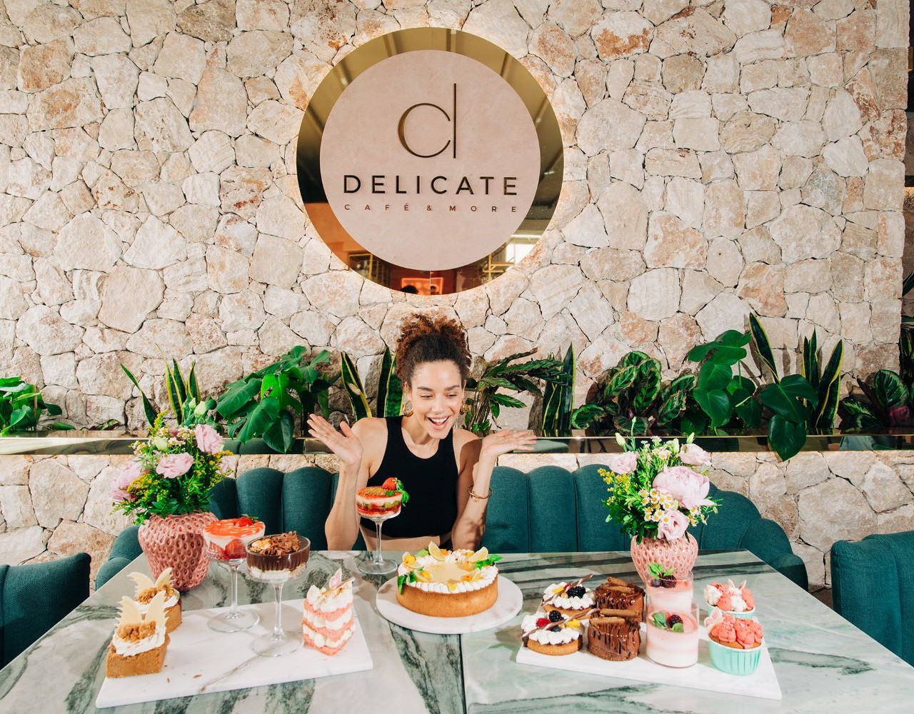 Ιδιαίτερη μνεία αξίζει και στα γλυκά τους, που ετοιμάζει καθημερινά η pastry chef του Delicate Ελένη Ντάντου, και μεταξύ άλλων περιλαμβάνουν pink velvet cake με βουτυρόκρεμα τυριού, μους λευκής σοκολάτας με γιαούρτι και φράουλες, brownies με επικάλυψη καραμέλας γάλακτος και τάρτα λεμόνι. Όλα τους απολαυστικά τόσο στο στόμα όσο και στο μάτι!