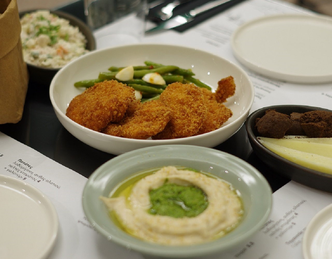 Ο χρόνος μπορεί να σταματά μόλις μπεις, αλλά αρχίζει να σε πάει στο παρελθόν μόλις δοκιμάσεις τα πρώτα πιάτα που σερβίρει η στοά. Τσιγαριαστά χόρτα με ντομάτα, φρέσκα μυρωδικά και αβγά τουρσί, μαύρες φακές με ρύζι, καπνιστή πέστροφα, λεμονόχορτο και πιπεριές, χούμους με λευκά φασόλια, φιστίκια αράπικα και φρέσκια σάλτσα μυρωδικών, μακαρονάδα τσουχτή με μαύρο σκόρδο, μυζήθρα και τηγανητό αβγό, φάβα με καπαρόφυλλα και ντοματίνια κονφί, οι πατάτες της βγαίνουν ολόκληρες με ανθό αλατιού, πελτέ ντομάτας και έξτρα γαλοτύρι. Στα κυρίως θα μαγευτείς από την προβατίνα ταλιάτα, και το τηγανητό κοτόπουλο με πράσινα φασολάκια, μοτσαρέλα και γλυκό τσίλι. Φυσικά δεν πρέπει να ξεχάσεις να δοκιμάσεις τα κεφτεδάκια. Φτιαγμένα με μοσχίδα Κερκίνης, φρέσκα κρεμμυδάκια, φρέσκα αβγά και πάνκο, ενώ ξεκουράζονται πάνω σε μια κρέμα καλαμποκιού.