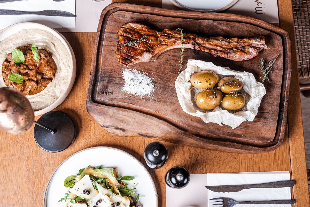 Οι σταθερές αξίες που κάνουν το Μαντρί να ξεχωρίζει 46 χρόνια τώρα, πέρα από το μοναδικό location, έχουν να κάνουν αναμφίβολα με την κουζίνα του. Από τη μία τα νόστιμα πιάτα -όπως τα περίφημα αρνίσια παϊδάκια τους- και από την άλλη η εξαιρετική πρώτη ύλη. Μάλιστα, να αναφέρω εδώ ότι το κρέας προέρχεται κατά κύριο λόγο από τις οικογενειακές φάρμες, ενώ παράλληλα προμηθεύονται κρέατα και τυροκομικά και από άλλες ελληνικές φάρμες και μικροπαραγωγούς για να καλύπτουν την μεγάλη ζήτηση που έχει το εστιατόριο, ενώ δεν λείπουν και κάποιες premium κοπές εισαγωγής Black Angus.