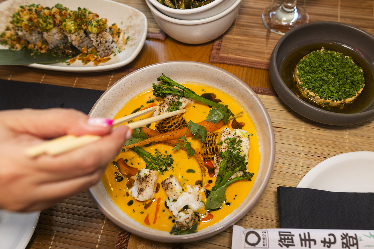 Λιγότερα από είκοσι είναι τα πιάτα στον κατάλογο, αλλά ένα κι ένα, κι έχεις να επιλέξεις ανάμεσα σε γκιόζα, σούσι, τατάκι, steak κουνουπιδιού, κίτρινο κάρι και άλλα που όσο κι αν περιγράψω αν δεν δοκιμάσεις δεν έχουν νόημα. Νόημα έχει ότι είναι νόστιμα, τα ποτά σαν το watermelon negroni απολαυστικά, ο μικρός χώρος φρέσκος, πολύχρωμος και φιλόξενος, τα παιδιά χαμογελαστά και ο δρόμος άγνωστος αν δεν είσαι της γειτονιάς, που σημαίνει χωρίς περιττό θόρυβο.