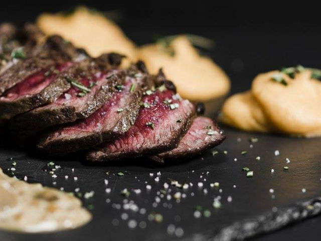 Η ταλιάτα από πικάνια, με πουρέ καρότο και ραγού μανιταριών. Όλα είναι προσεγμένα. Από την κοπή του κρέατος, μέχρι τον πουρέ, αλλά και την σάλτσα που τα συνοδεύει.
