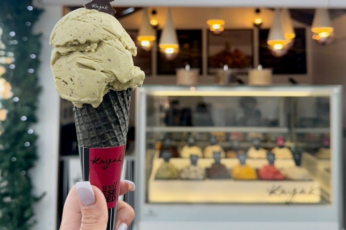 Aνάμεσα στα λαμπερά yachts και την εορταστική ατμόσφαιρα της Astir Marina, δοκιμάσαμε το παγωτό φυστίκι της Kayak – μια γεύση που απογειώνει την εμπειρία του χριστουγεννιάτικου pop-up store.