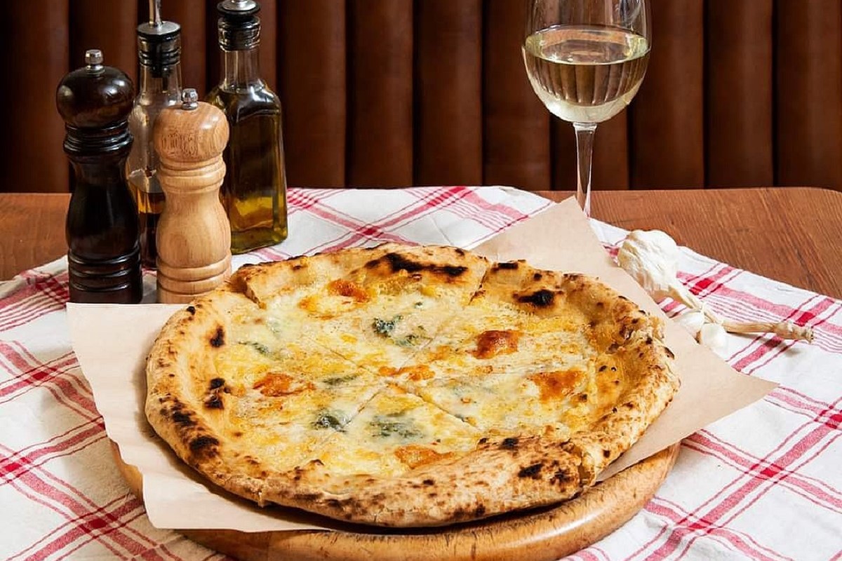 Το μενού του φαγητού μαζεμένο και μικρό εξαρχής, προσφέρει 4-5 επιλογές σε πολύ νόστιμες και πληθωρικές σαλάτες, μέχρι η αυθεντική ναπολιτάνικη πίτσα να πάρει τελικά τη σκυτάλη. Με ζύμη που ωριμάζει για δύο εικοσιτετράωρα πριν ανοιχτεί μαεστρικά από τον pizzaiolo και ψηθεί στον ξυλόφουρνο, αυτή η πίτσα δεν θέλει πολλά για να σε κερδίσει. Το ζυμάρι της είναι πανάλαφρο, νόστιμο και με μια ελαφρώς τραγανή κρούστα στο καψαλισμένο στεφάνι, ενώ τα κομμάτια διπλώνονται εύκολα και τρώγονται πάντα με το χέρι.