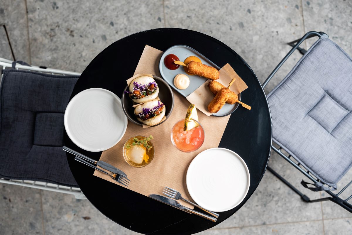 Στον κατάλογο θα βρεις καβουροσαλάτα σε τραγανά chips γαρίδας, χειροποίητες κοτομπουκιές με σάλτσα κάρυ, baobans με παναρισμένο κοτόπουλο ή με γαρίδα, καθώς και ποικιλία τυριών-αλλαντικών με χειροποίητες μαρμελάδες και ξηρούς καρπούς. Και μια μικρή αμερικάνικη προσθήκη, τα πλέον διαδεδομένα corndogs, που επίσης αποτελούν ένα ιδανικό σνακ μαζί με το ποτό σου. Παράλληλα, στο μενού θα βρεις και τέσσερις λαχταριστές επιλογές σε πίτσα, όπως εκείνη με τη λευκή σάλτσα, το μανιτάρι, το λάδι τρούφας και τη φρέσκια mozzarella, που ομολογούμε ήδη τη λιγουρευόμαστε.