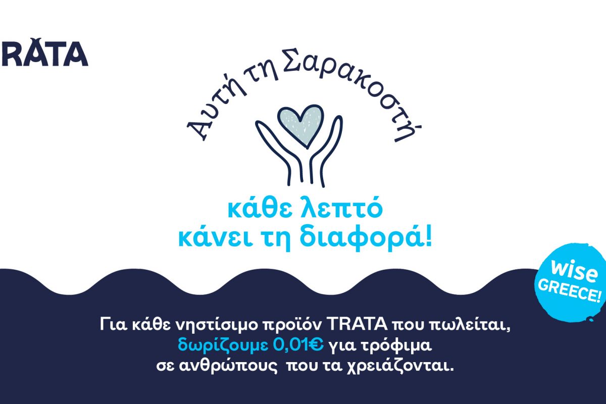 Για τις 40 ημέρες της Σαρακοστής, η TRATA έχει την τιμητική της και έτσι από κάθε νηστίσιμο προϊόν που θα πωλείται σε όλη την Ελλάδα, θα αποδίδει 0,01€ στη Wise Greece, η οποία στο τέλος της ενέργειας θα μετατρέψει όλα τα «μονόλεπτα» σε τρόφιμα υψηλής διατροφικής αξίας για οικογένειες και παιδιά που ζουν στα όρια της φτώχειας στην Ελλάδα.