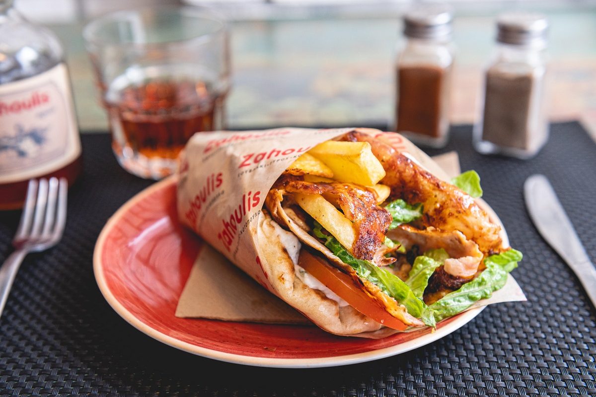 Στο μενού ξεχωρίζει και η κατηγορία Mπουρί, μια πληθωρική πίτα από τορτίγια που φτάνει σε μήκος τα 30 εκ και μάλλον είναι ό,τι πιο χορταστικό μπορείς να βρεις σε τυλιχτό. Τα μπουριά του Zahoulis προσφέρονται σε πολλές και διαφορετικές συνταγές, από τις πιο κλασικές με γύρο ή καλαμάκι -μπορείς να διαλέξεις ανάμεσα σε χοιρινό και κοτόπουλο- αλλά και σε συνδυασμούς χορτοφαγικούς ή πιο light. Άλλωστε, εδώ υπάρχουν μεσογειακά πιάτα με την υπογραφή του Διατροφολόγου Γιώργου Μουλίνου, για όσους προσέχουν τη διατροφή τους.