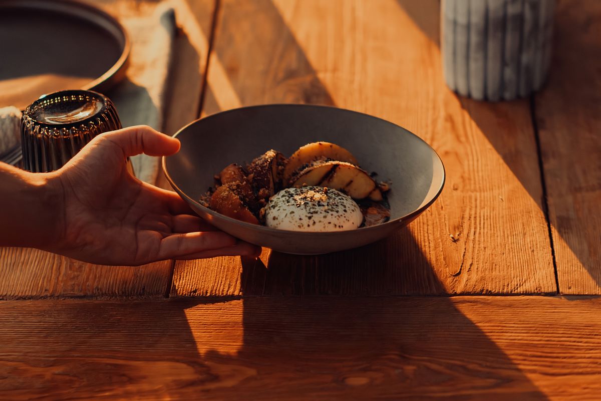 Στις κύριες επιλογές, θα συναντήσεις πιάτα όπως το κρεμώδες ριζότο με πορτσίνι και πουρέ καραμελωμένης αγκινάρας ή το τραγανό φιλέτο Rubia Gallega με αρωματικά μπαχαρικά. Σειρά έχει το επιδόρπιο, όπως κρέμα σοκολάτας με καραμέλα φυστικιών και παγωτό βανίλιας bourbon ή το καραμελωμένο τσουρέκι με μήλα και κανέλα που ξυπνά αγαπημένες αναμνήσεις.