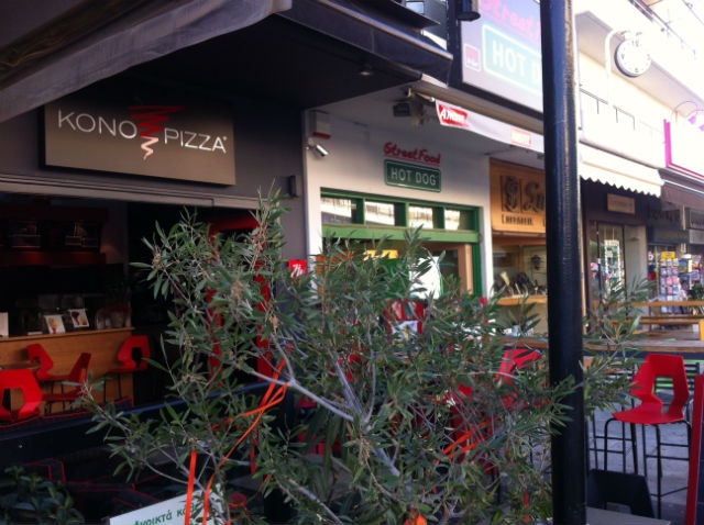 Λίγο πιο δίπλα το Tasteland, η παράδοση στην πίτσα-στο-σπίτι που ακούει στο όνομα Gelsomino και το Espresso Bar που θέλει να κολλάζει και για αυτό έχει μοστράρει φάτσα κάρτα την ταμπέλα “Donuts”, την οποία λογικά βλέπει και ο Χόμερ Σίμπσον από το Σπρίνγκφιλντ. Συνεχίζουμε με Kono Pizza (τη νέα αυτή μόδα στο φαγητό), την ιστορική Golden Crepe και το Street Food με τα χοτ-ντογκ. Στο σύνολο; Δέκα μαγαζιά το ένα δίπλα στο άλλο, με μοναδική εξαίρεση το Τακούνι-Εξπρές. Το τελευταίο μαζί με ένα κοσμηματοπωλείο (Σπενς), ένα φαρμακείο, το παραδοσιακό βιβλιοπωλείο (Paperland) είναι τα μοναδικά μαγαζιά του δρόμου (του ίδιου – δεν έχουμε υπολογίσει τα απέναντι) που δεν σε “παχαίνουν”. (Αντίθετα το φαρμακείο σε ζυγίζει κιόλας…)