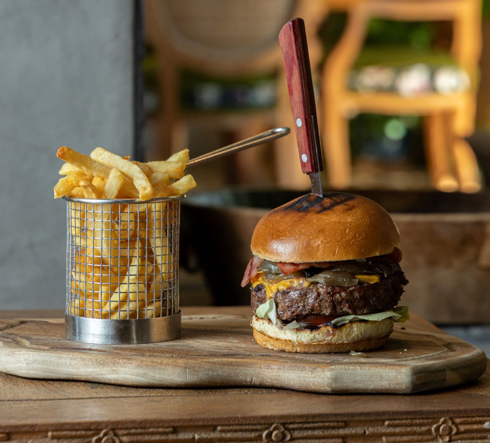 Από ορεκτικά όπως τα μανιτάρια σοτέ με θυμάρι και ξύσμα λεμονιού μέχρι σαλάτες όπως η πολύ δημοφιλής «bio της μάνας» με λαχανικά βιολογικής καλλιέργειας, από κυρίως πιάτα όπως το φιλέτο σολομού μαριναρισμένο σε μέλι και σουσάμι, το φιλέτο στήθος κοτόπουλο με πουρέ παντζαριού και αρωματικό ρύζι μπασμάτι αλλά και το κοτόπουλο σουβλάκι μαριναρισμένο με ανατολίτικα μπαχαρικά και κουσκούς -που είναι κι ένα από τα αγαπημένα πιάτα του σεφ- μέχρι το the american burger με 100% μοσχαρίσιο κιμά με μπέικον, ο Δημήτρης Λαμπίρης θέλει να προσφέρει πιάτα που πάνω απ’ όλα θα σε κάνουν να νιώσεις άνετα.