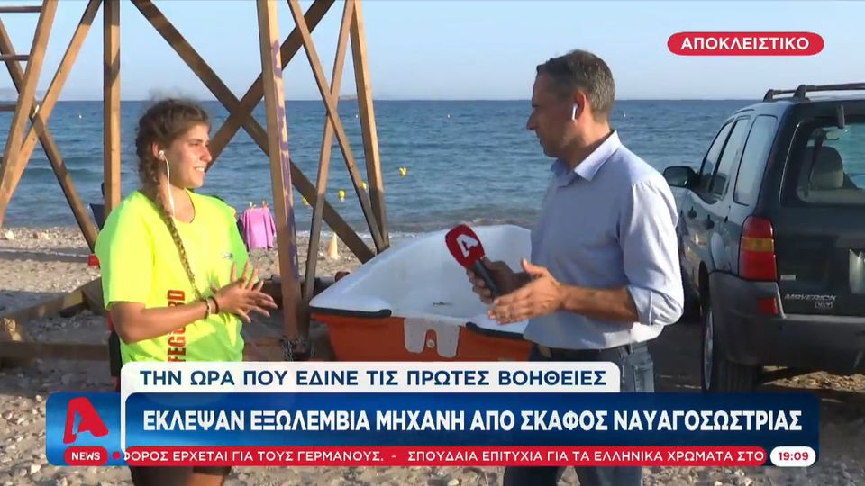 «Πήρα σήμα από συνάδελφό μου, να του πάω μια μπουκάλα οξυγόνου που του είχε τελειώσει» είπε η ναυαγοσώστρια στην κάμερα του κεντρικού δελτίου ειδήσεων του σταθμού. «Πήρα τη μπουκάλα και την πήγα. Όταν επέστρεψα μου είπε ένας κύριος πως κάποιος μου πήρε την εξωλέμβια μηχανή από το ναυαγοσωστικό σκάφος».