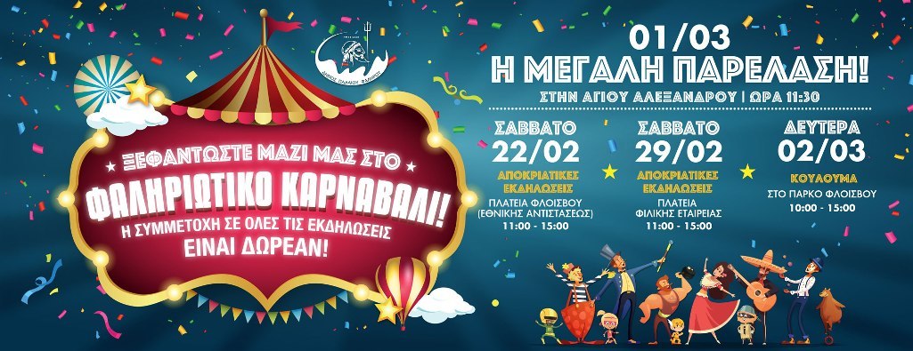 Σε καρναβαλικούς ρυθμούς ετοιμάζεται να κινηθεί ο Δήμος Παλαιού Φαλήρου, όπου έχει ετοιμάσει ένα πλούσιο πρόγραμμα γεμάτο εκδηλώσεις για μικρούς και μεγάλους με ελεύθερη είσοδο.