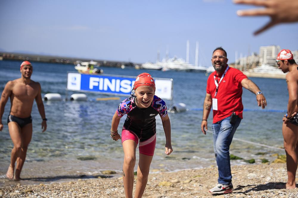 Η αρχή της κολυμβητικής δράσης έγινε στις 10:15 το πρωί με εκατοντάδες χαμόγελα παιδιών που κολύμπησαν την απόσταση των 500μ. στην παραλία Βοτσαλάκια.