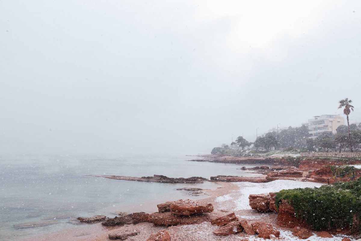 Κακοκαιρία Ελπίδα: Απόκοσμο το χιονισμένο τοπίο στη Βάρκιζα