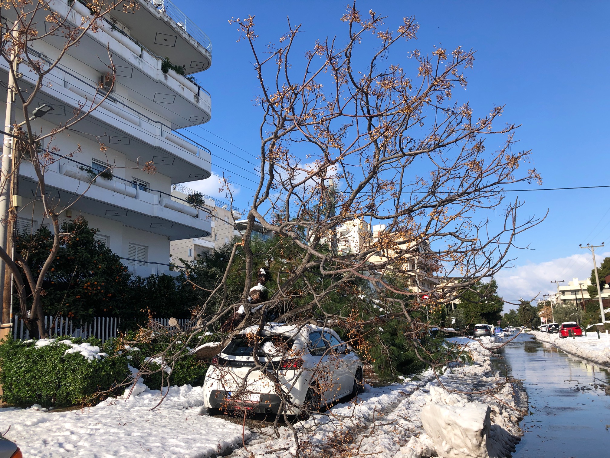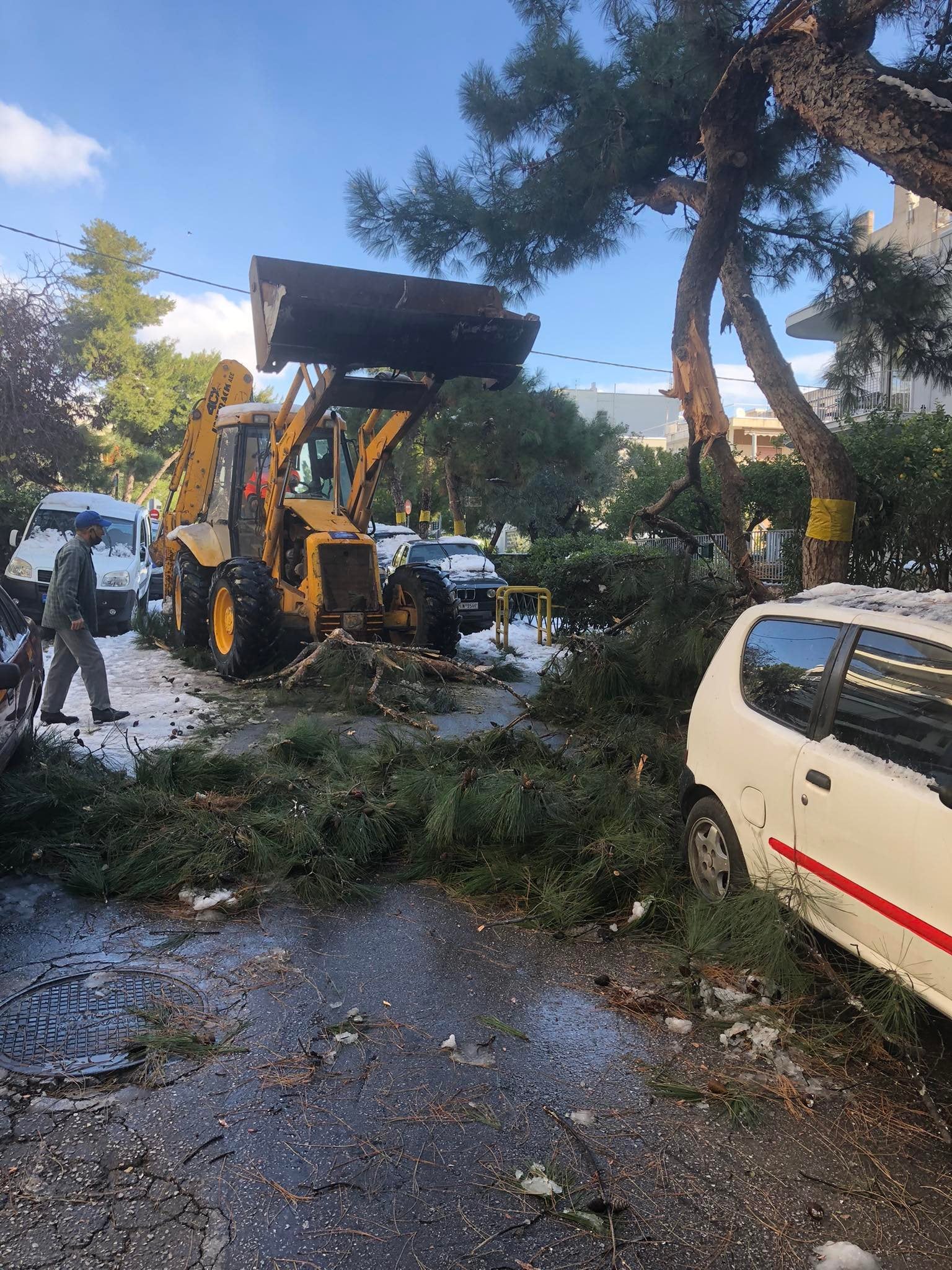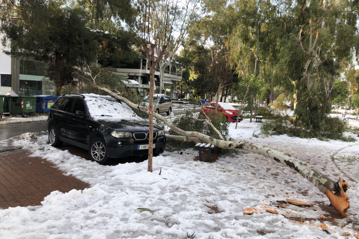 Παραμένουν ακόμη και σήμερα χωρίς ρεύμα σπίτια στα νότια προάστια - Δέντρα που έπεσαν, ακόμα και στο κέντρο της Γλυφάδας, προκάλεσαν ζημιές σε αυτοκίνητα- Επιχειρούν οι Δήμοι προκειμένου να καθαρίσουν οι δρόμοι από το χιόνι