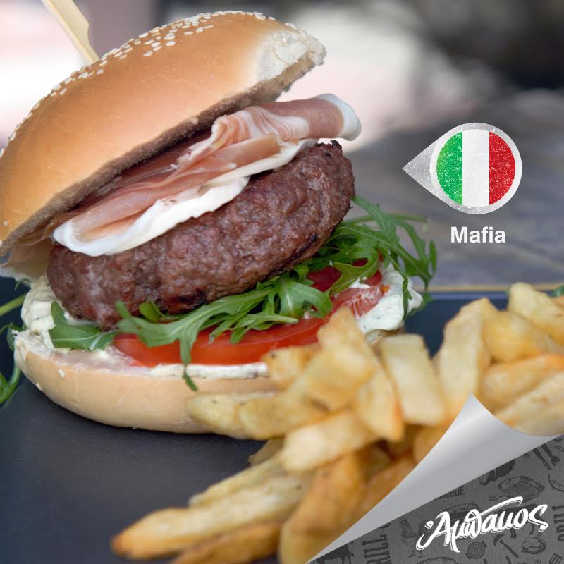Με μπιφτέκι 200gr., μαγιονέζα βασιλικού, ντομάτα, baby ρόκα, mozzarella και prosciutto. Συνοδεύεται από φρεσκοκομμένες τηγανιτές πατάτες. Περιττό να αναφέρουμε ότι το ψωμάκι ζυμώνεται αποκλειστικά για μας και ψήνεται εκείνη τη στιγμή στον ξυλόφουρνό μας.