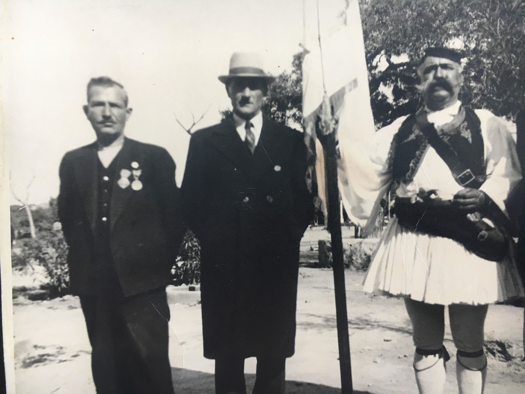 Στη μέση, ο Γιώργος Γιαννιτσόπουλος, ως πρόεδρος της κοινότητας. 1932