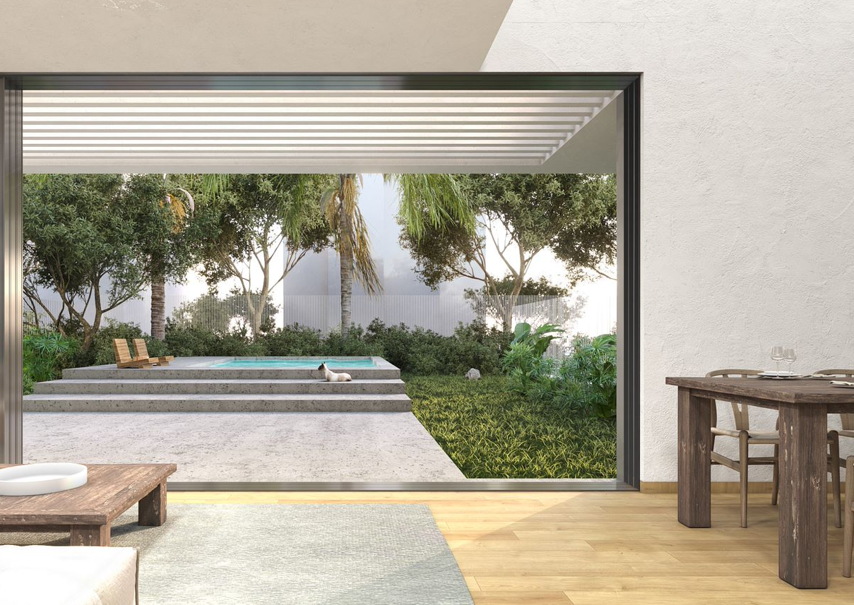 Ο κτιριακός όγκος τοποθετείται κεντρικά και αναπτύσσεται κατά μήκος του οικοπέδου, με σκοπό την κατασκευή μίας δομής η οποία στοχεύει τη θέα, επιτρέποντας τη δημιουργία 8 νότιων ιδιοκτησιών εκ των οποίων οι 6 είναι διαμπερείς και 1 βόρειου προσανατολισμού.