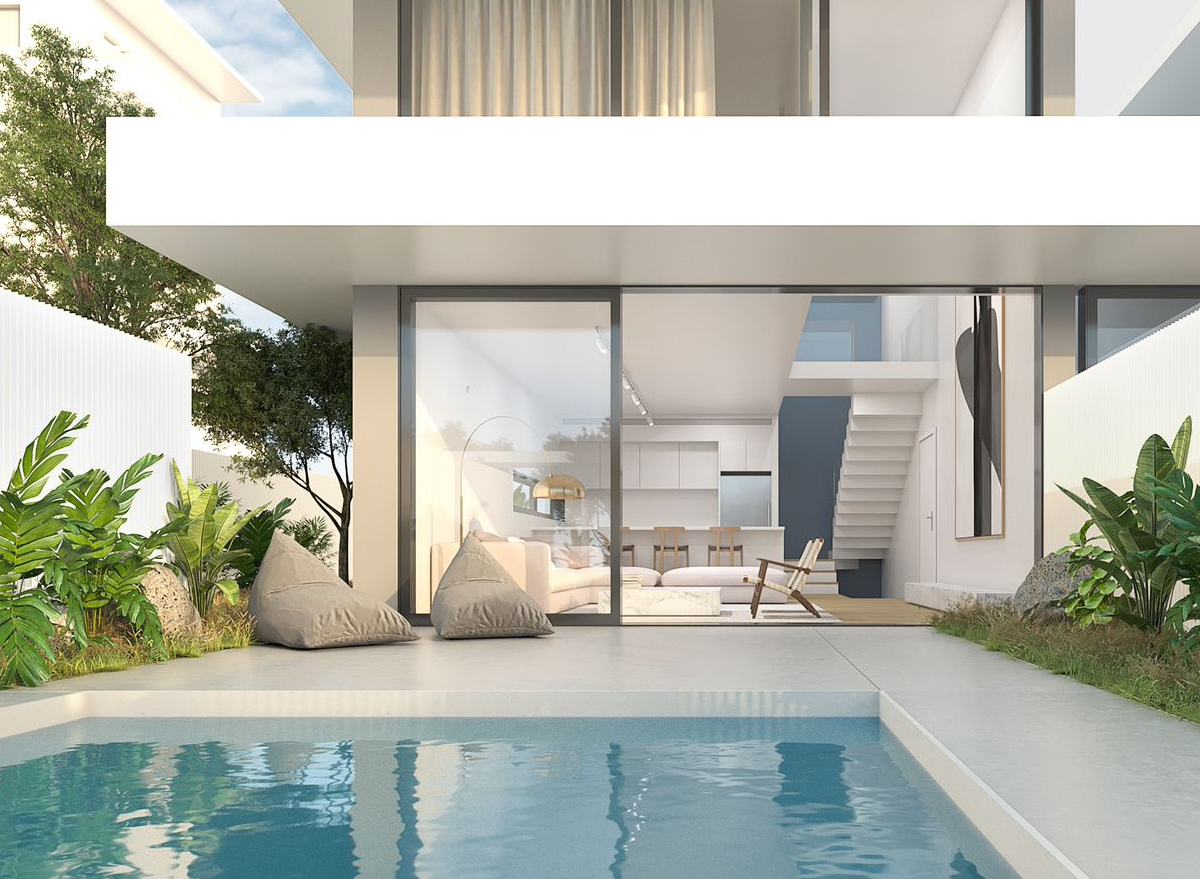 Πρόκειται για ένα project ενεργειακής κλάσης Α+, το οποίο αποτελείται από 2 μεζονέτες με κήπο και πισίνα, 5 διαμερίσματα, 1 μεζονέτα δευτέρου-τρίτου ορόφου και 2 μεζονέτες τετάρτου-πέμπτου.