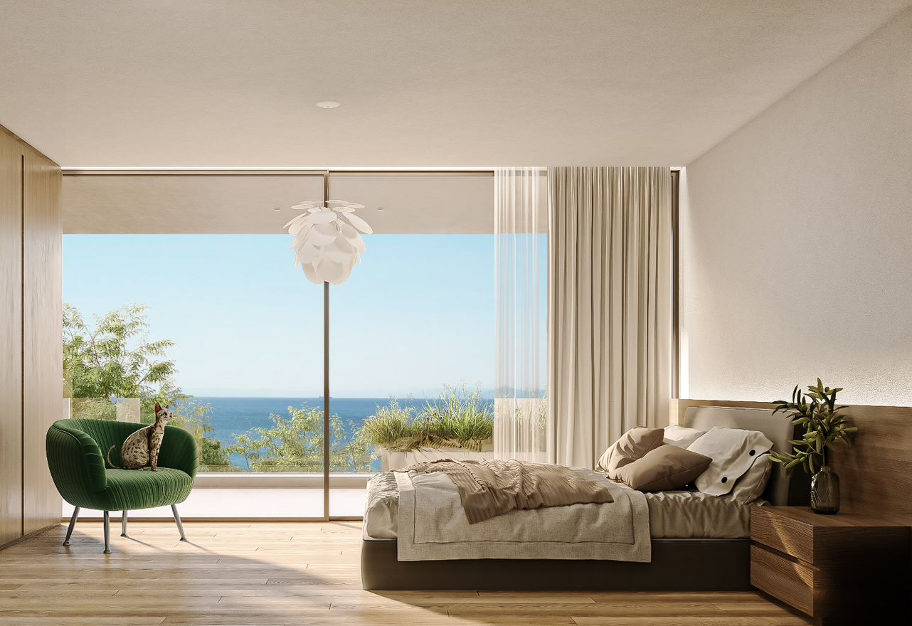 Η μεγαλύτερη έμφαση κατά τον σχεδιασμό δόθηκε στον προσανατολισμό των διαμερισμάτων με στόχο να εξασφαλίζεται η θέα προς τη θάλασσα από τα περισσότερα δωμάτια. Αυτό επιτυγχάνεται και με την τοποθέτηση πολλών και μεγάλων κουφωμάτων νέας τεχνολογίας.
