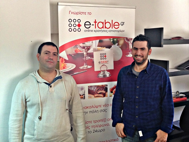 Κώστας Σαριδάκης: Το e-table.gr γεννήθηκε ως ιδέα το 2011, καθώς διαπιστώσαμε ότι δεν υπήρχε ένας εύκολος και εύχρηστος τρόπος για να ανακαλύπτει κάποιος νέα εστιατόρια σε διαφορετικές περιοχές και από διαφορετικές κουζίνες. Παράλληλα όμως, συνειδητοποιήσαμε ότι ο περισσότερος κόσμος, όπως κι εμείς, θέλει να γνωρίζει τη διαθεσιμότητα των εστιατορίων και να μπορεί να κάνει κράτηση άμεσα, χωρίς να χρειάζεται να παίρνει τηλέφωνο ξεχωριστά σε κάθε μαγαζί και – πολλές φορές – περισσότερες από μία φορά. Η τελική απόφαση για υλοποίηση της ιδέας πάρθηκε όταν ένα Σάββατο απόγευμα χρειάστηκε να πάρουμε με τον Γιώργο αρκετά τηλέφωνα σε 4 διαφορετικά μαγαζιά για να βρούμε κάποιο διαθέσιμο τραπέζι για το ίδιο βράδυ.