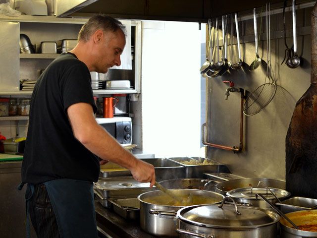 Η κουζίνα είναι ανοικτή. Ο Τάσος Σουμέλας, σημερινός ιδιοκτήτης του «Παράδεισου» έχει μαγειρέψει και περιμένει τους πελάτες-φίλους τους να τους δείξει τα σημερινά πιάτα και να τους σερβίρει. Καθόμαστε και μιλάμε σε ένα τραπέζι με την Τόνια να ξεκινάει να φωτογραφίζει. «Βγάλε με μια φωτογραφία έτσι που είμαι σαν γαμπρός» λέει ο κύριος Αντρέας στην Τόνια. Στον «Παράδεισο» υπάρχει διάθεση για πλάκες. «Να εδώ να βγάλεις ένα ωραίο πορτρέτο στον κύριο που μόλις έφαγε τις φακές του» λέει ο Νίκος. Ο Τάσος γελάει και ξεκινάει να μου μιλάει για τον δικό του «Παράδεισο»