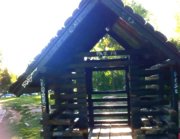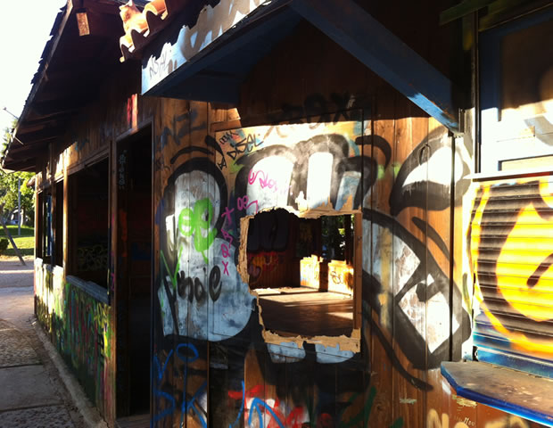 Δεν χρειαζόταν κάποια ταμπέλα “κλειστόν”. Η σπασμένη πόρτα στην είσοδο και τα γεμάτα γκράφιτι ξεχαρβαλωμένα ξύλινα σπιτάκια πρόδιδαν αυτομάτως την εγκατάλειψη του Παιδότοπου από τις δημοτικές αρχές. Αν δεν ήξερες δεν θα μπορούσες καν να φανταστείς ότι πρόκειται για την ίδια παιδική χαρά, που κάποτε ήταν γεμάτη φωνές. Κάποιες σκονισμένες κούνιες μόνο και κάποια σπασμένα ξύλινα σπιτάκια, θύμιζαν τις δόξες του παρελθόντος.