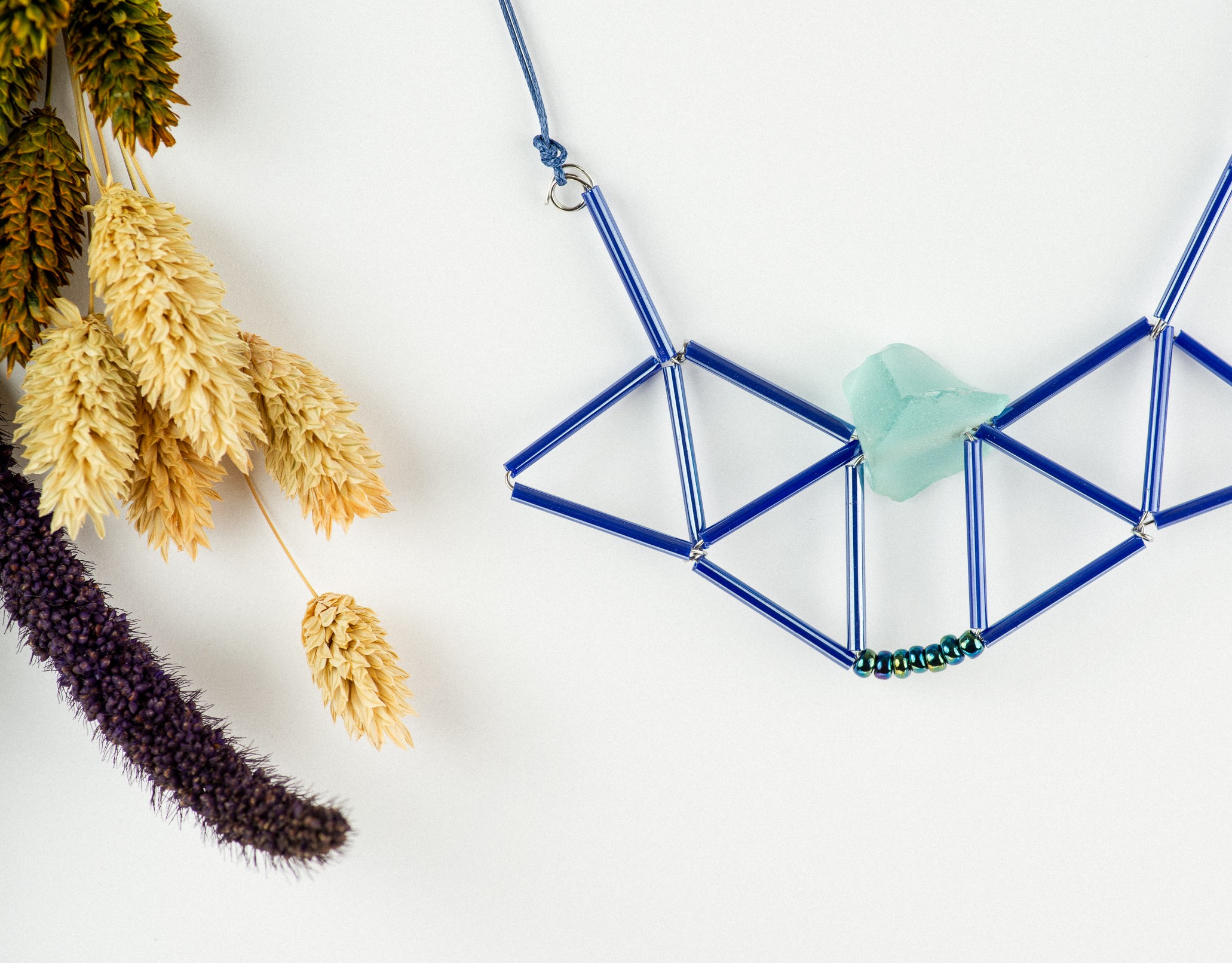 Συνονθύλευμα ημιπολύτιμων λίθων σχηματίζουν αυτό το κρεμαστό κολιέ.