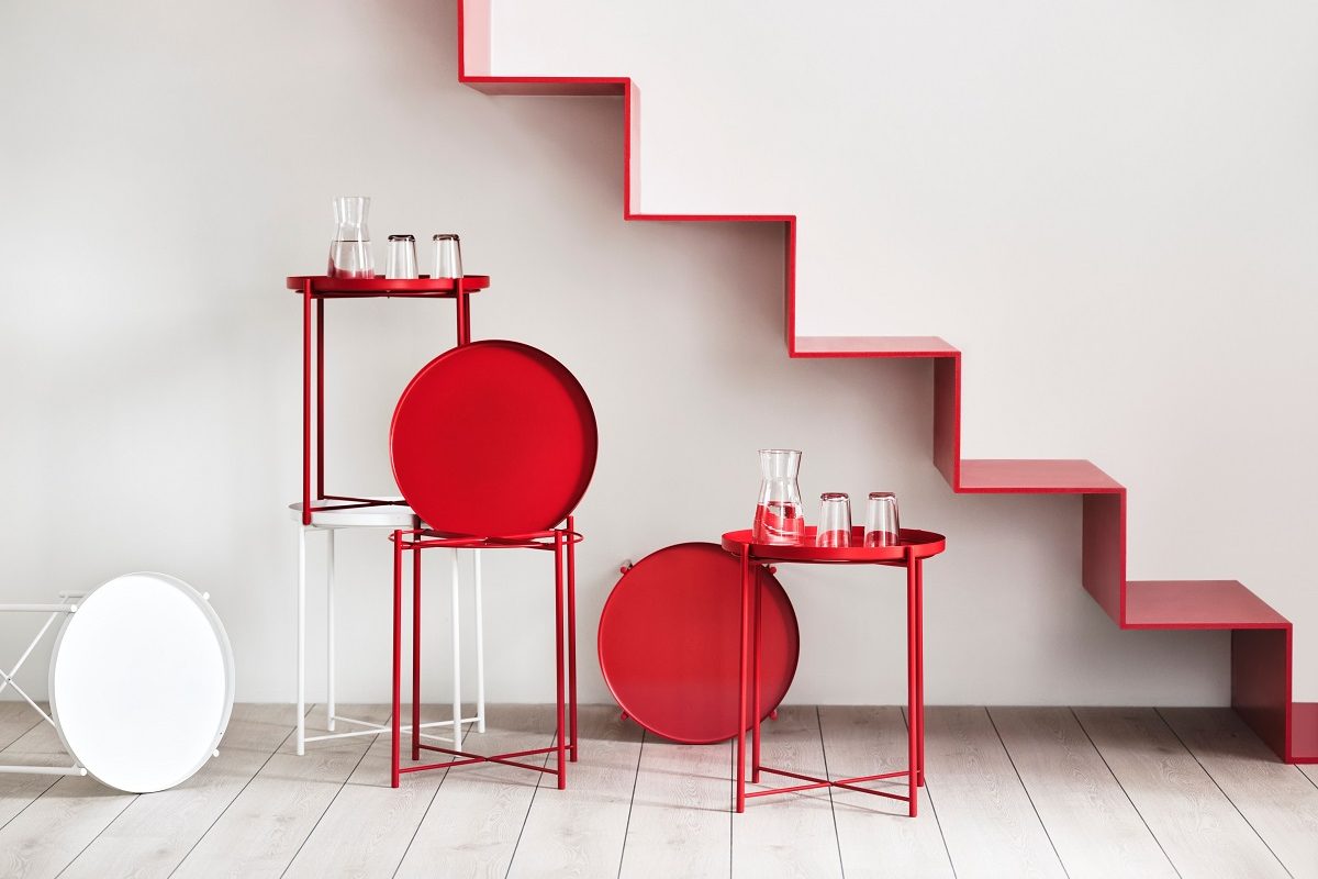 Βάλε χρώμα στο δωμάτιο με ένα κόκκινο τραπέζι. Εμείς έχουμε αδυναμία στα πρακτικά τραπέζια – δίσκους GLADOM, που είναι ελαφριά και εύκολα στη μετακίνηση για να τοποθετούνται όπου τα χρειαζόμαστε. Συνδύασε με τις καρέκλες GENESÖN σε έντονο κόκκινο χρώμα, ενώ με την κουρτίνα VINTEROXBÄR σε ασπρόμαυρο μοτίβο φέρνεις την απαραίτητη ισορροπία στο χώρο.