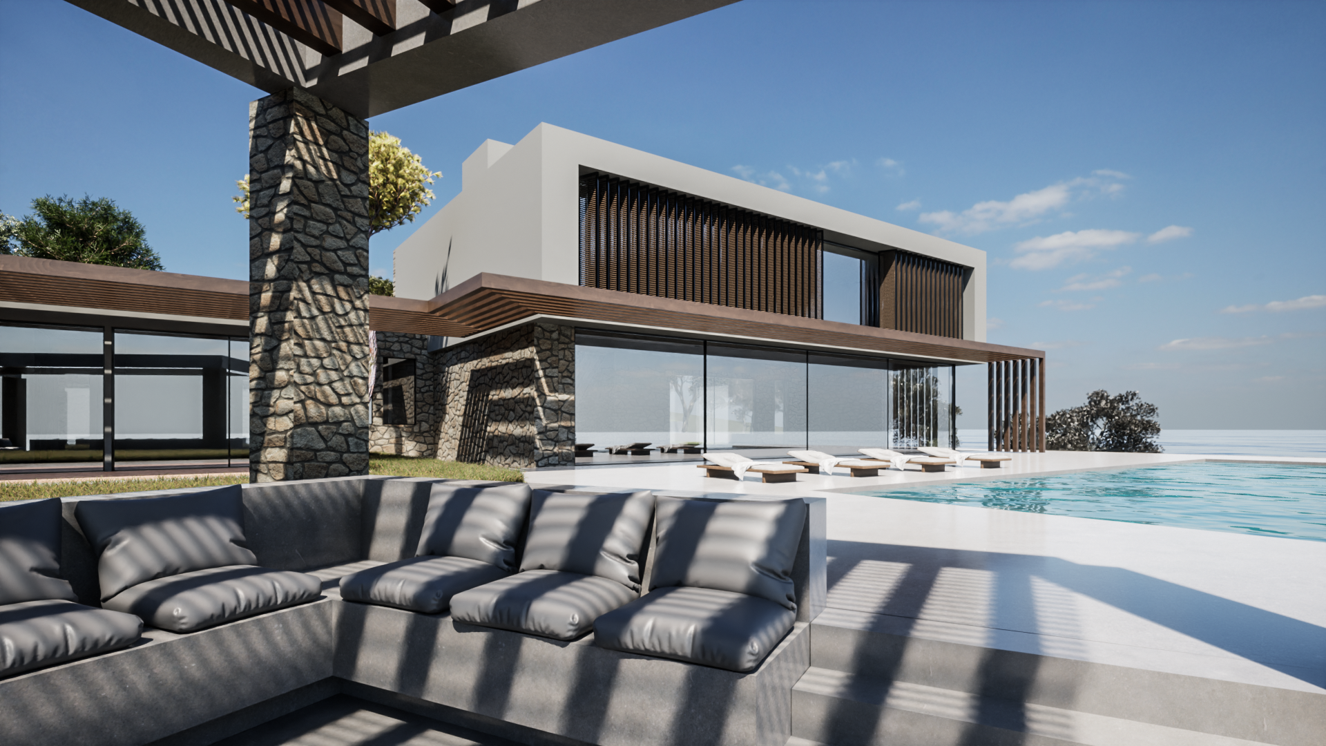 Η αρχιτεκτονική μας γλώσσα είναι αφαιρετική και μίνιμαλ, με καθαρές γραμμές και σαφή γεωμετρία, χωρίς αισθητικό «θόρυβο». Τα έργα μας δίνουν έμφαση στη λειτουργικότητα και στον minimal σχεδιασμό που αναδεικνύει τη διαχρονική αρμονία, με στόχο την καινοτομία, τη δημιουργική αξιοποίηση της τεχνολογίας και τη βιωσιμότητα. Οι μεγάλες γυάλινες επιφάνειες επιτρέπουν τη συνεχή οπτική και λειτουργική σύνδεση με τον περιβάλλοντα χώρο, ενώ δίνουμε ιδιαίτερο βάρος στο φυσικό φως, στη ροή των χώρων και στη συνέχεια εσωτερικού-εξωτερικού, ώστε ο υπαίθριος χώρος να λειτουργεί ως πραγματική προέκταση του σπιτιού.