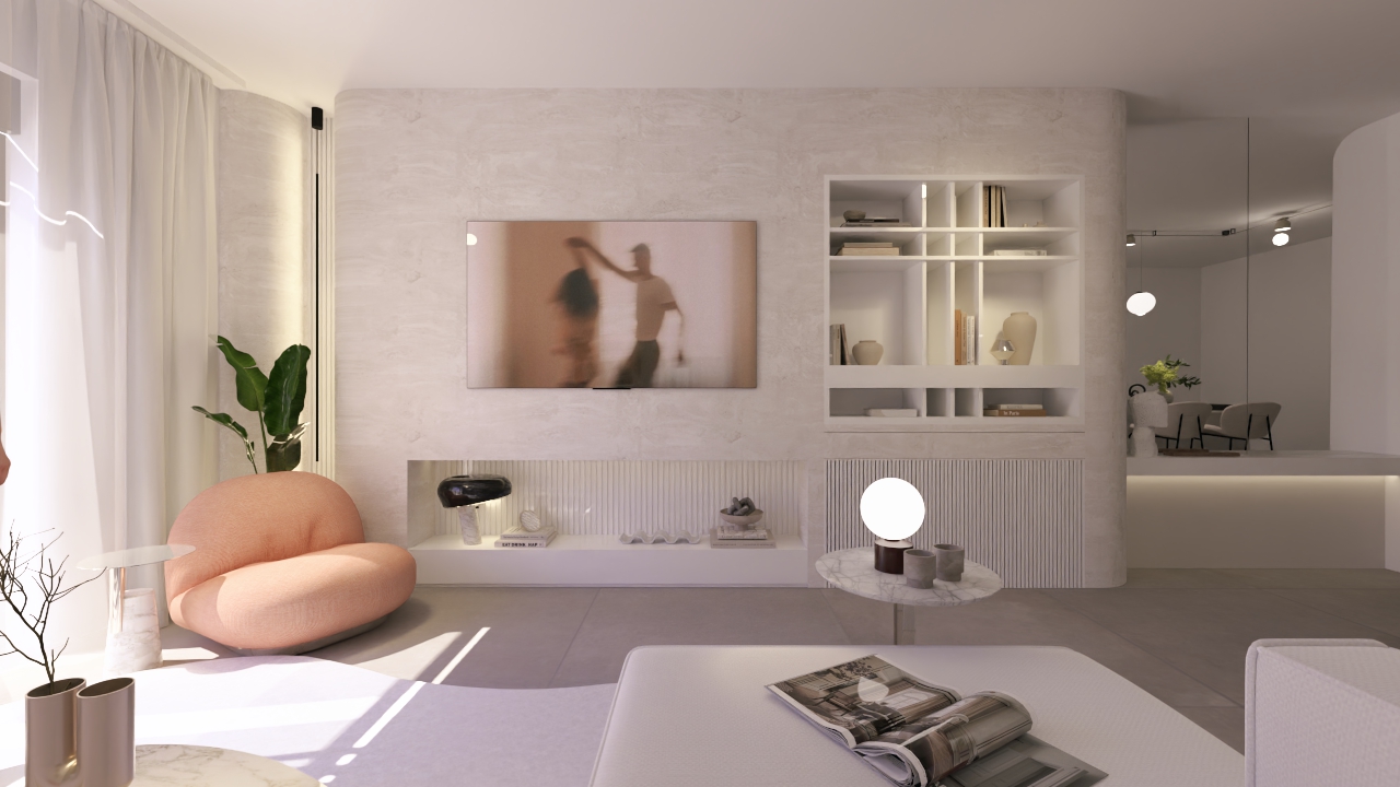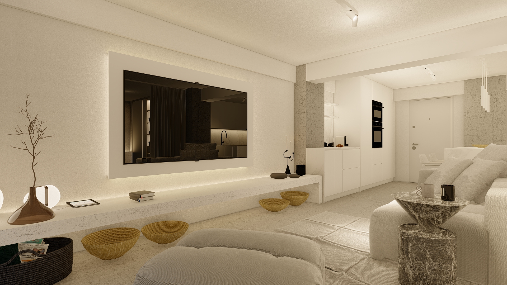 Ένα έργο είναι το Ice Veil στο Παλαιό Φάληρο, όπου τρεις ξεχωριστοί χώροι μετατράπηκαν σε έναν ενιαίο, ισορροπημένο χώρο με μονόχρωμη παλέτα, φυσικά υλικά και ζεστές υφές. Στη Νέα Φιλαδέλφεια, το Re-Forma επαναπροσδιόρισε παραδοσιακά στοιχεία σε σύγχρονο πλαίσιο με ανοιχτή διάταξη, καμπύλα έπιπλα και φωτισμό που αναδεικνύει την αρμονία και τη λειτουργικότητα. Τέλος, στο project Golden, στην περιοχή της Καλλιθέας, ένα υπόγειο μετατράπηκε σε ευέλικτο χώρο εργασίας με κρυφή κουζίνα, διακριτικό μπάνιο και γυάλινους διαχωρισμούς, συνδυάζοντας εργονομία, υλικά και ατμοσφαιρικό φωτισμό. Όλα τα έργα αναδεικνύουν την ισορροπία ανάμεσα στην αισθητική, τη λειτουργικότητα και την εμπειρία του χώρου.