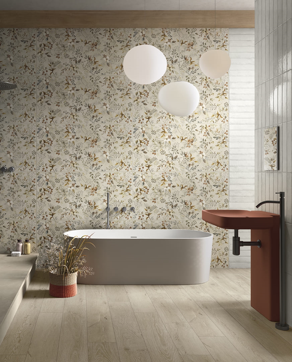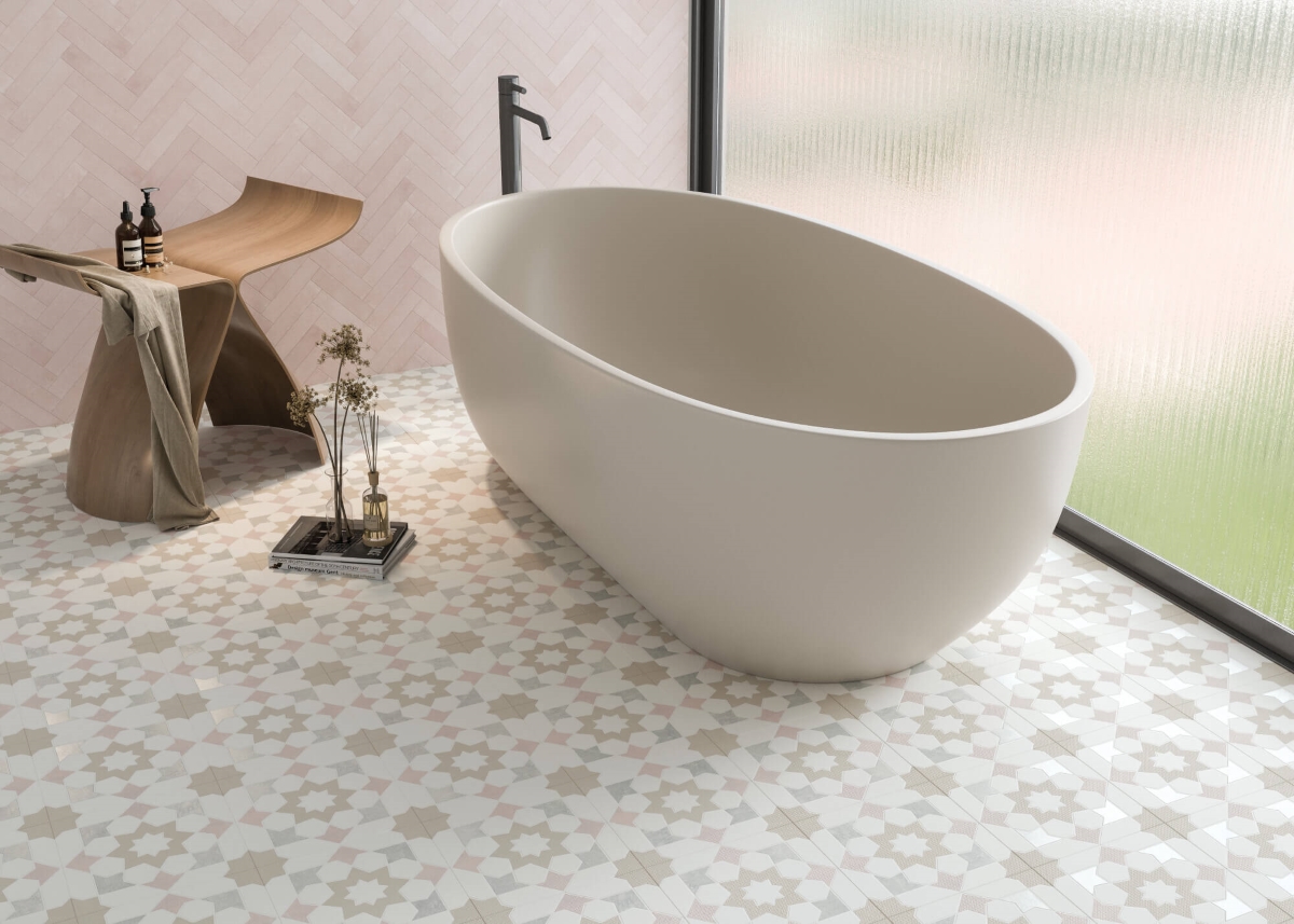 - Πλακάκια με μοτίβα όπως Terrazzo, Τουβλάκια ή Πλακάκια Kit-Kat: Τα ιδιαίτερα σχέδια και χρώματα δημιουργούν statement walls που ξεχωρίζουν.