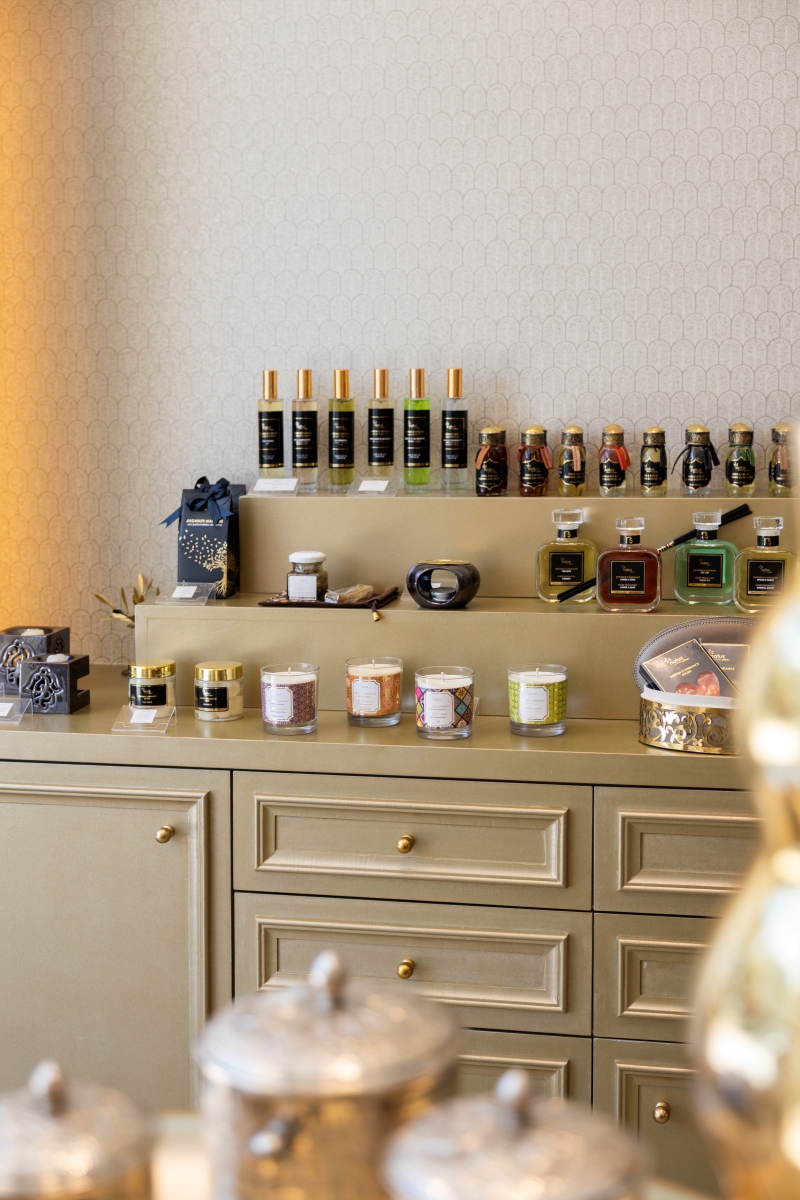 Αυτό το ενδιαφέρον αποτυπώνεται και στις εσάνς που επιλέγονται ξανά και ξανά: oud, Green Tea, Oriental και διάφορα εξωτικά blends που δίνουν στον χώρο μια αίσθηση ταξιδιού. Η λούφα καφέ έχει γίνει μικρή τελετουργία απολέπισης, ενώ το Black Soap και το κλασικό γάντι παραμένουν από τα πρώτα αντικείμενα που αγγίζει κανείς πριν φύγει. Mικρές λεπτομέρειες που θυμίζουν πως η ομορφιά μπορεί πραγματικά να γίνει καθημερινή ιεροτελεστία, σαν ένα προσωπικό hammam που χωράει στο σπίτι.