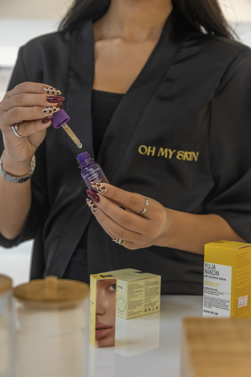 Έτσι, το 2023 αποφασίζει πως θέλει να συγκεντρώσει τα κορεάτικα θέλω της σ’ έναν χώρο που να τα εξηγεί όλα αυτά σωστά. Πρώτα δημιουργεί ένα e-shop και, τον Απρίλιο του ’24, ανοίγει και το φυσικό κατάστημα. Στο Oh My Skin βρίσκεις επιλεκτικά κορεάτικα brands που έχουν δοκιμαστεί ένα προς ένα, με μια ξεκάθαρη λογική και, επιπλέον, με ένα μικρό virality της εποχής: vegan, cruelty-free, εξειδικευμένα. Μαθαίνω ότι έχουν δοκιμαστεί περισσότερα από 100 brands, αλλά στα ράφια της θα βρεις μόνο όσα λειτουργούν αποτελεσματικά.