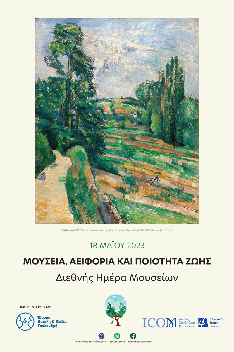 Το θέμα του εορτασμού της Διεθνούς Ημέρας Μουσείων (18 Μαϊου) για το 2023 είναι «Μουσεία, Αειφορία και Ποιότητα Ζωής», με τιμώμενο φορέα από το Ελληνικό Τμήμα του Διεθνούς Συμβουλίου Μουσείων ICOM, το Ίδρυμα Βασίλη & Ελίζας Γουλανδρή. Την ημέρα του εορτασμού, Πέμπτη 18 Μαϊου 2023, η είσοδος είναι ελεύθερη στα Δημόσια Μουσεία και τους Αρχαιολογικούς Χώρους.