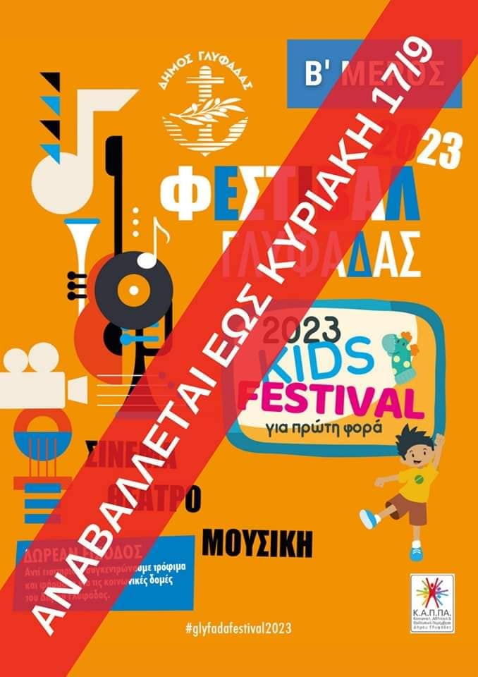 Με απόφαση του Δήμου Γλυφάδας αναβάλλονται έως και την Κυριακή 17 Σεπτεμβρίου όλες οι εκδηλώσεις του Φεστιβάλ.