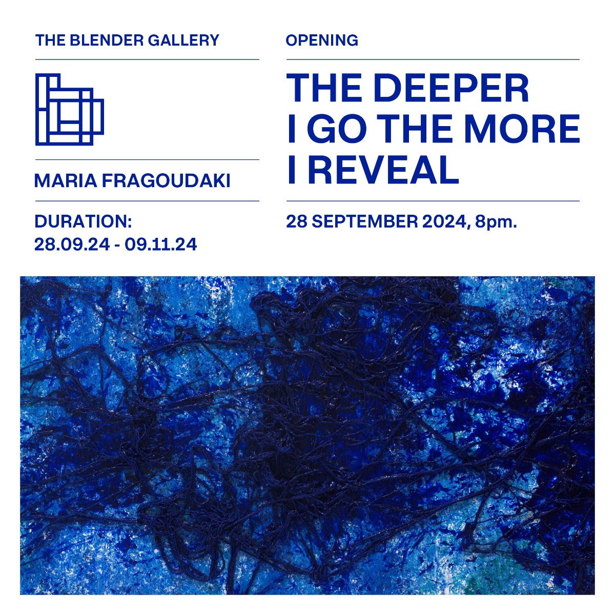 Με τη νέα της έκθεση “The Deeper I Go, The More I Reveal”, που θα φιλοξενηθεί στην The Blender Gallery από τις 28 Σεπτεμβρίου έως τις 9 Νοεμβρίου, η Μαρία Φραγκουδάκη μας καλεί σε ένα καλλιτεχνικό ταξίδι που εξετάζει τη σύνδεση του προσωπικού βιώματος με τον ευρύτερο κοινωνικό και περιβαλλοντικό κόσμο. Η καλλιτέχνιδα, μέσα από τη μινιμαλιστική της προσέγγιση, παρουσιάζει έργα που έχουν δημιουργηθεί τα τελευταία δέκα χρόνια, χρησιμοποιώντας υλικά όπως ύφασμα και γύψο για να αποκαλύψει την εσωτερική της πορεία.