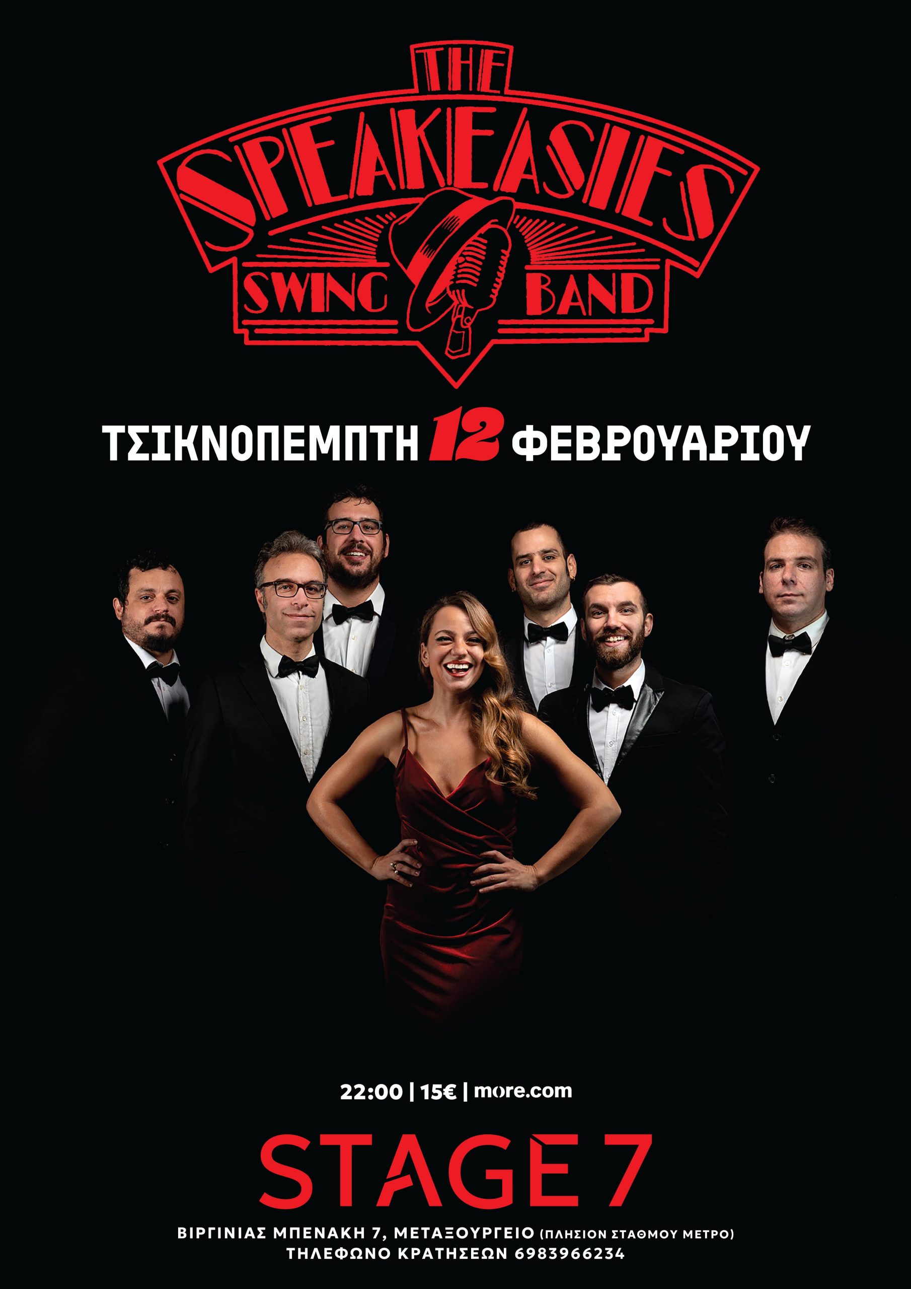 Η Τσικνοπέμπτη στο Stage 7 μετατρέπεται σε αυθεντικό μουσικοχορευτικό πάρτι με τους The Speakeasies Swing Band, ένα από τα πιο εξωστρεφή και καλοκουρδισμένα σχήματα της ελληνικής swing και jazz σκηνής.