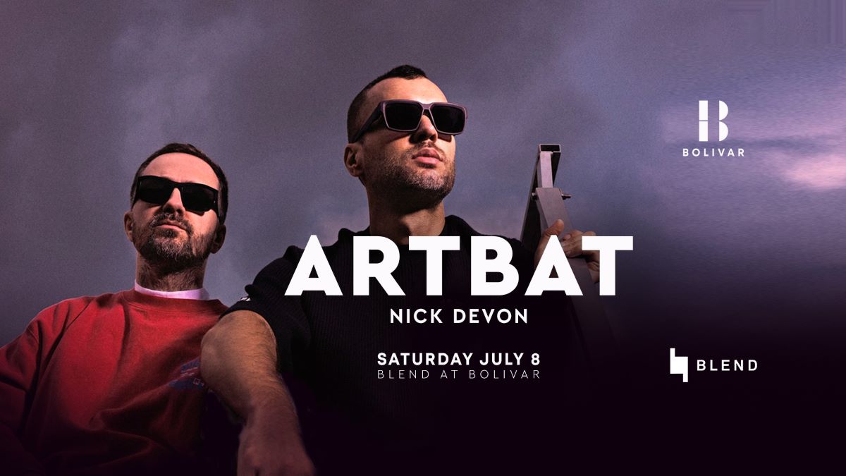 Επιπλέον, το Σάββατο 8 Ιουλίου το Blend υποδέχεται στο Bolivar τους Ουκρανούς superstar της melodic techno Artbat, ένα από τα πιο περιζήτητα δίδυμα της παγκόσμιας dance σκηνής, που έρχεται για να ξεσηκώσει με ρυθμό και μελωδία το αθηναϊκό κοινό. Μαζί τους ο Nick Devon.