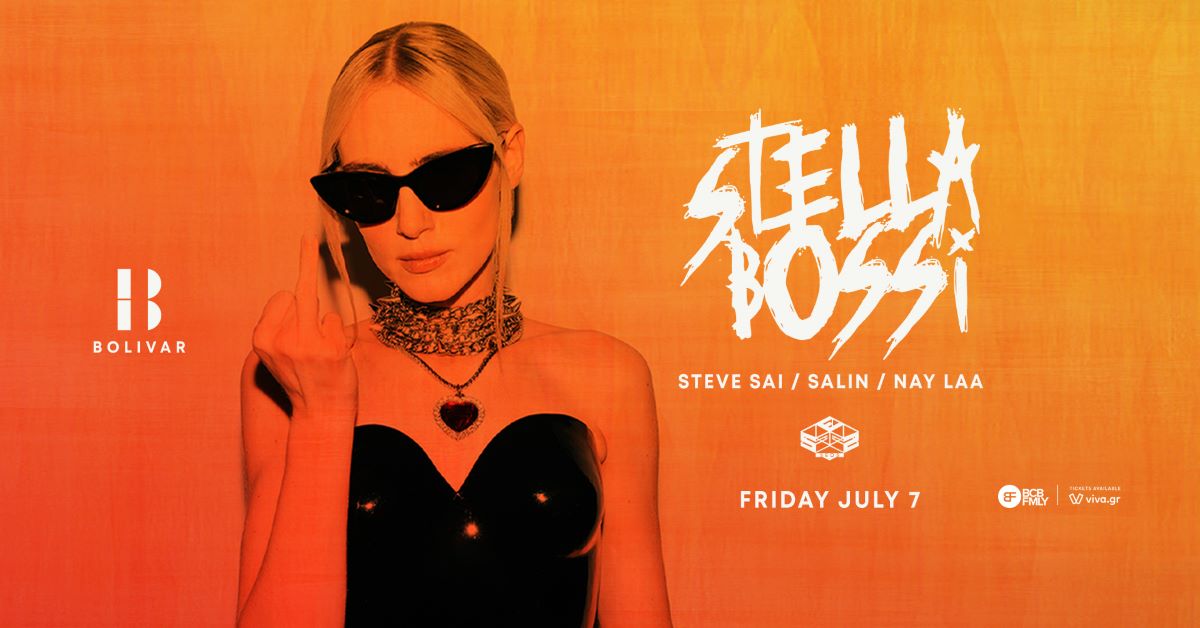 Την Παρασκευή 7 Ιουλίου το SEDS παρουσιάζει στο Bolivar την Stella Bossi, το κορίτσι που κατάφερε να συνδέσει το βερολινέζικο techno με την εξωστρέφεια και τη δημοφιλία. Η διάσημη εκκεντρική persona με τα μαύρα γυαλιά εκπροσωπεί τη νέα hybrid γενιά της techno και έρχεται με το καθηλωτικό της μουσικό style για μια μοναδική βραδιά στο Bolivar. Support from Steve Sai, Salin & Nay Laa.