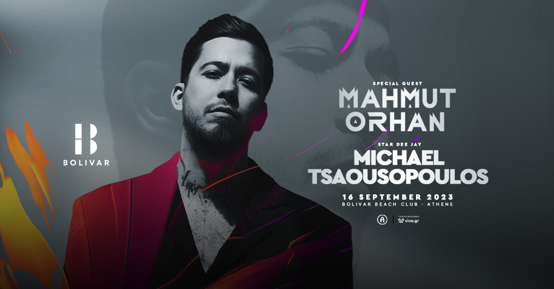 Το Σάββατο 16 Σεπτέμβρη ο δημοφιλής dj/producer Mahmut Orhan, παραγωγός αρκετών επιτυχιών που έχουν μονοπωλήσει τα παγκόσμια charts chars, όπως “Feel”, “Game Of Thrones” και “6 Days” έρχεται για ένα ένα μοναδικό dj set στο Bolivar Beach Bar. Μαζί του ιδιαίτερα αγαπημένος dj/radio producer Michael Tsaousopoulos.