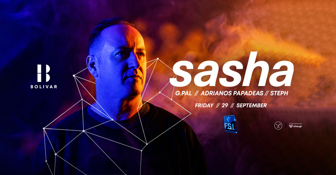 Την Παρασκευή 29 Σεπτέμβρη Bolivar & F.S.I. παρουσιάζουν τον απόλυτα διαχρονικό Dj/ Producer Sasha. O Ουαλός καλλιτέχνης δεν χρειάζεται ιδιαίτερες συστάσεις. Συγκαταλέγεται αναμφισβήτητα ανάμεσα στους κορυφαίους στον χώρο της ηλεκτρονικής μουσικής, με υποψηφιότητα για Grammy, 4 φορές νικητής σε International Dance Music Award και DJ Mag και μια ήδη κορυφαία καριέρα που συνεχώς εκτοξεύεται.