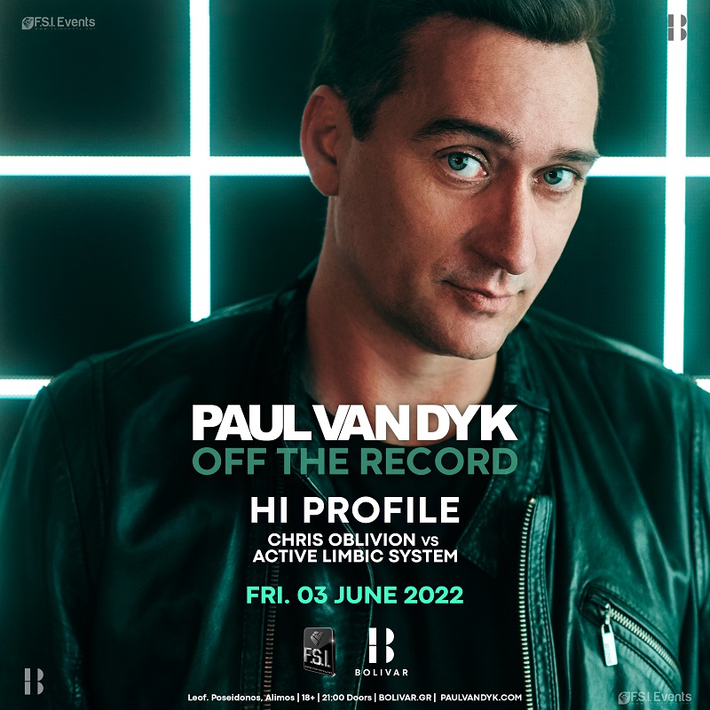 Ο διάσημος DJ Paul Van Dyk επιστρέφει στο Bolivar την Παρασκευή 3 Ιουνίου, στο πλαίσιο της παγκόσμιας περιοδείας του για την παρουσίαση του νέου του album με τίτλο «Off The Record».